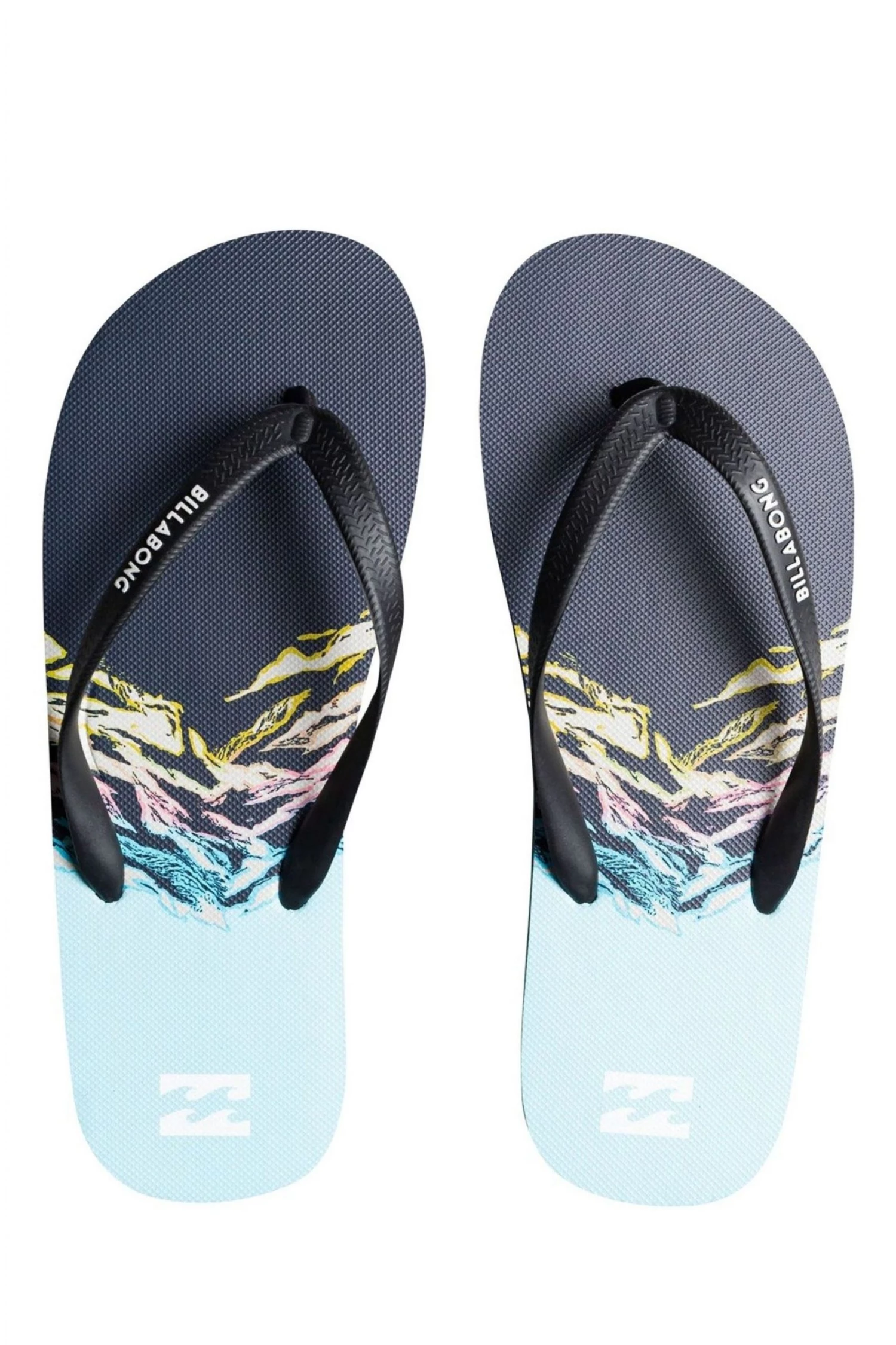 Sandals for Men. Featuring SABS with raised Billabong font, moulded TPR tongue logo, slip-on, recycled EVA/Rubber insole, Wave logo moulded EVA outsole, slip on strap sandal, recycled printed footbed and hexagon textured insole to increase traction. Sold by colour in sizes: 8, 9, 10, 11, 12, 13.