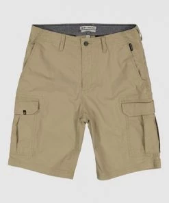 Cargo Shorts for Men. Features include military inspired, side cargo pockets, flag branding label on cargo pocket, front slant pockets, woven branding label on back pocket, core fit, 21″ outseam and regular length.
