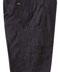 Cargo Shorts for Men. Features include military inspired, side cargo pockets, flag branding label on cargo pocket, front slant pockets, woven branding label on back pocket, core fit, 21″ outseam and regular length.