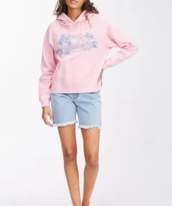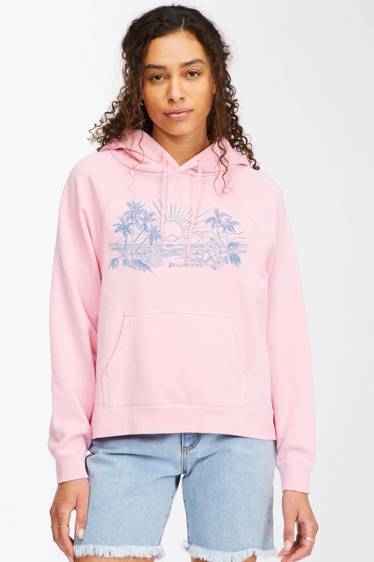 Hoodie for Women. Features include, cotton polyester blend fabric with a casual and unrestricted relaxed fit, kangaroo pocket, drawcord on hood, pigment garment dye and assorted graphics.