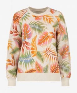 Sweatshirt for Women. Features include: cotton-polyester blend fabric, casual and unrestricted relaxed fit, rib bands, and twill patch on left hem.