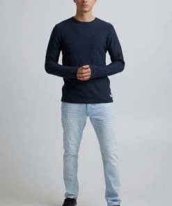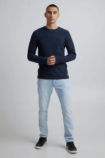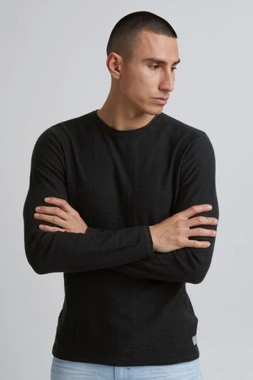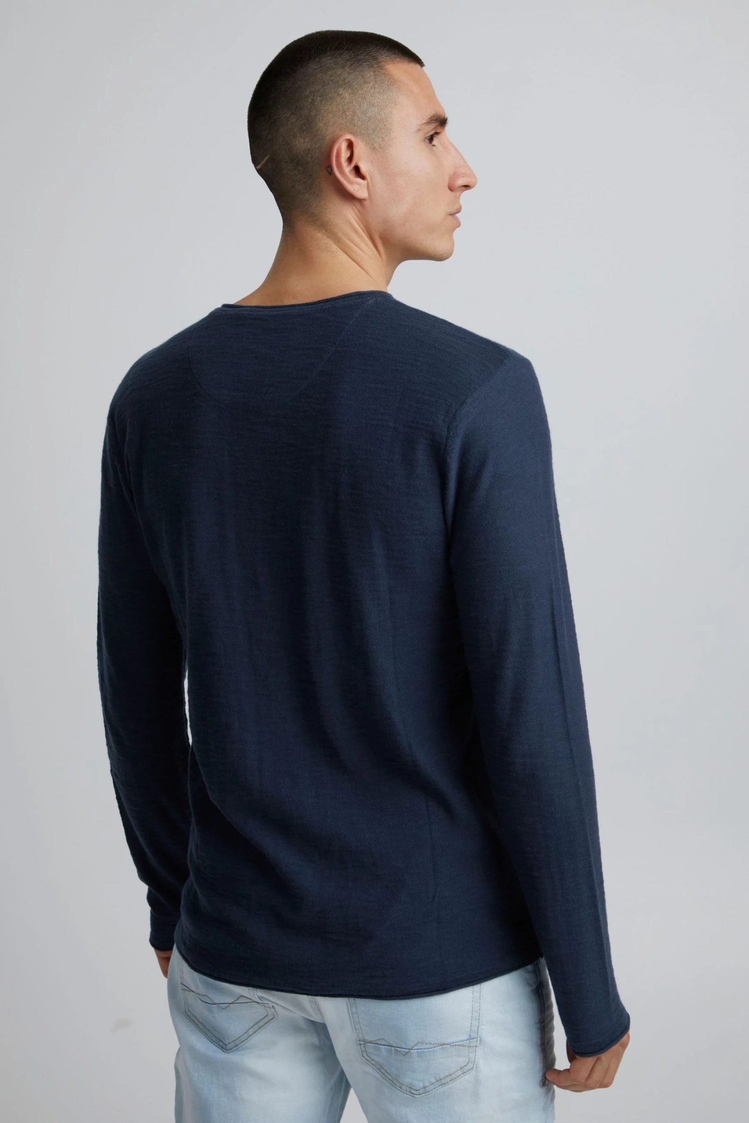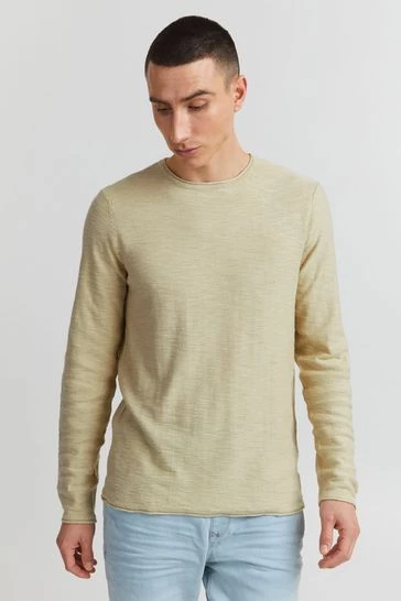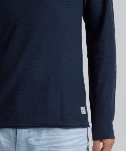 Lightweight 100% cotton slub yarn knit from Blend with rolled detail on collar, cuffs and hem.