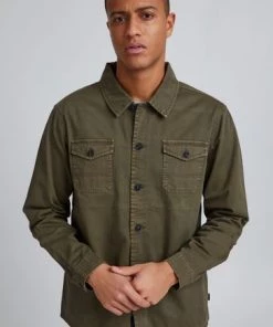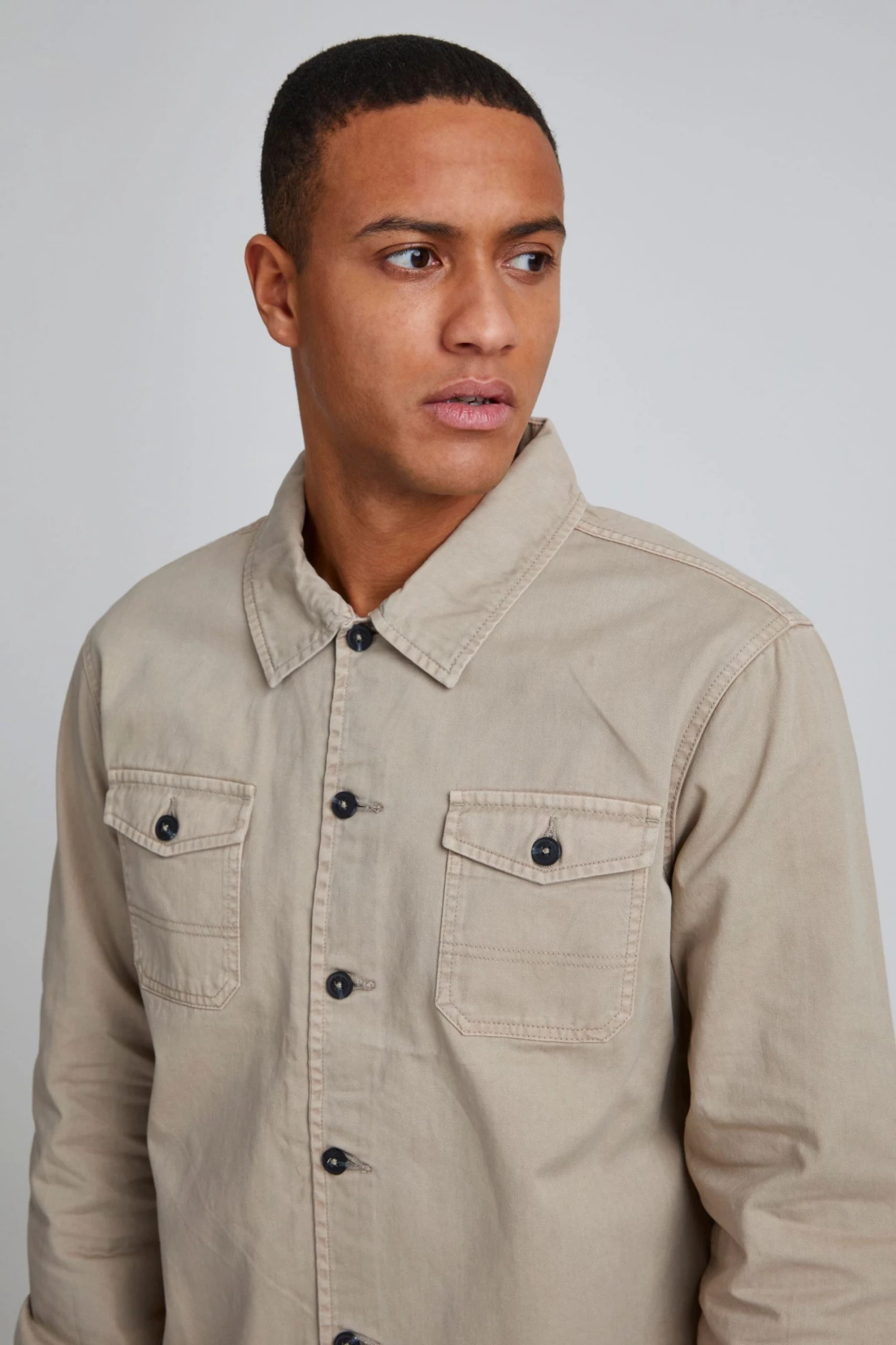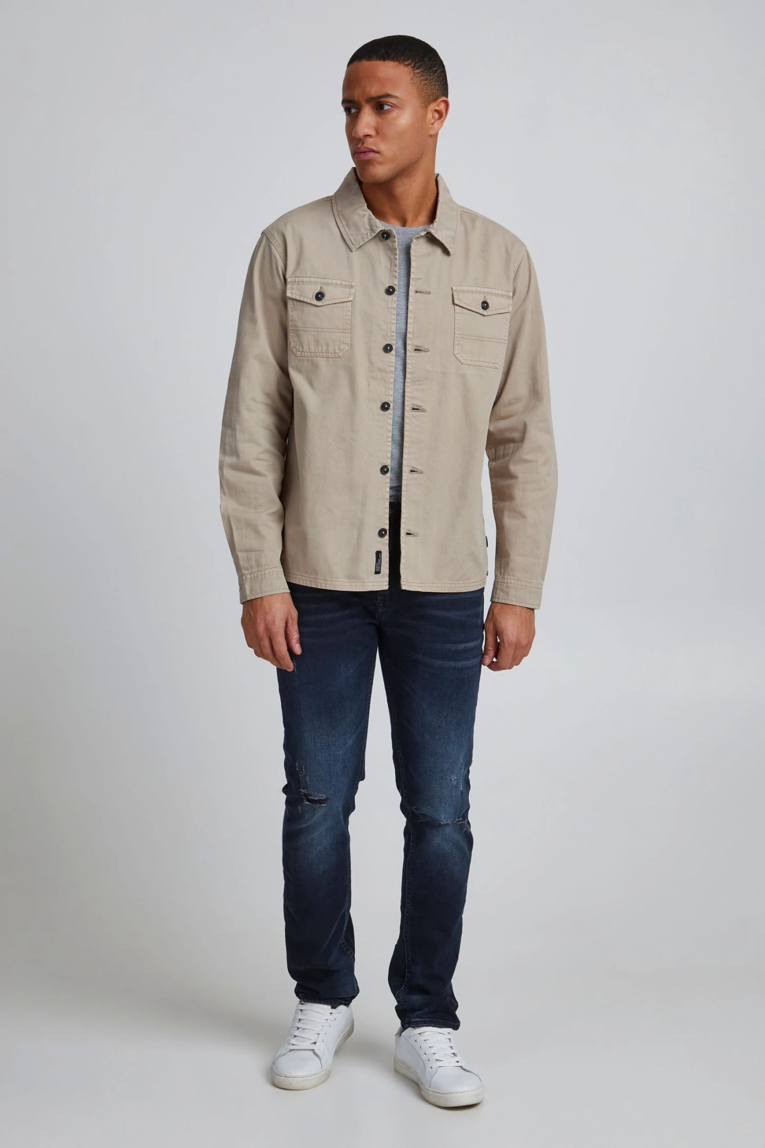 100% cotton utility style overshirt by Blend with 2 front pockets and larger button detail.