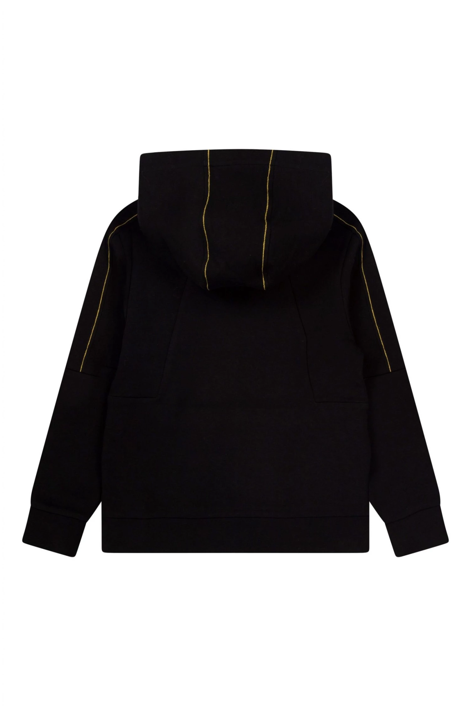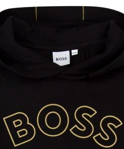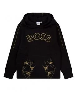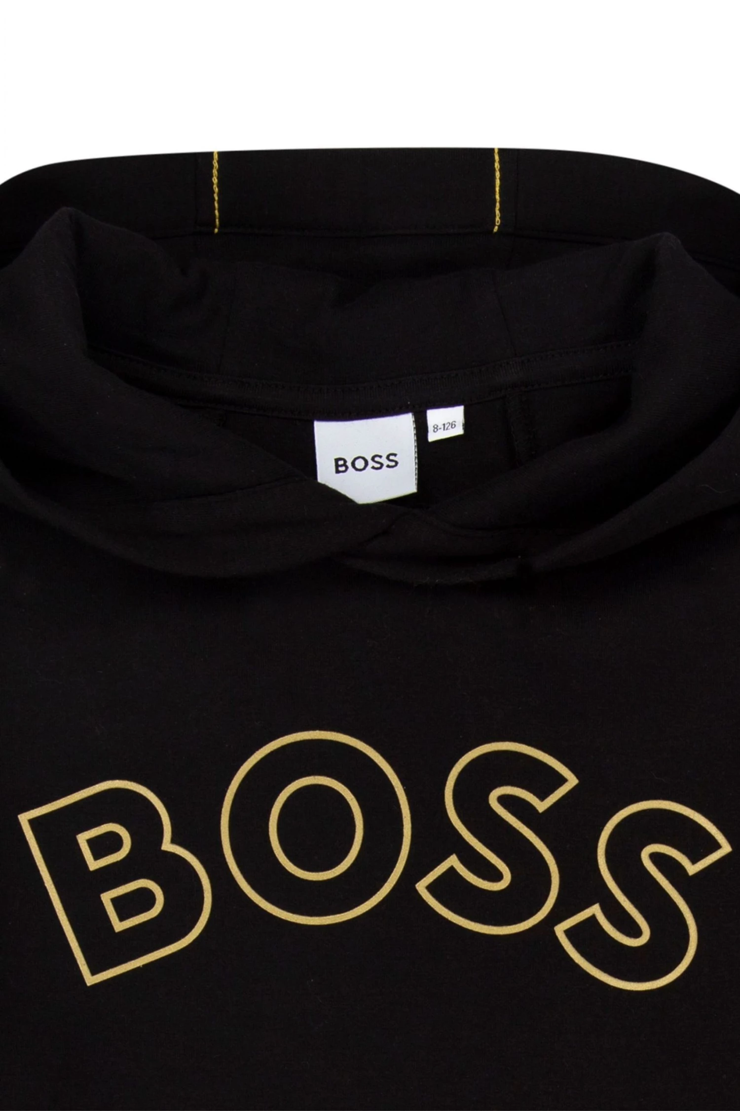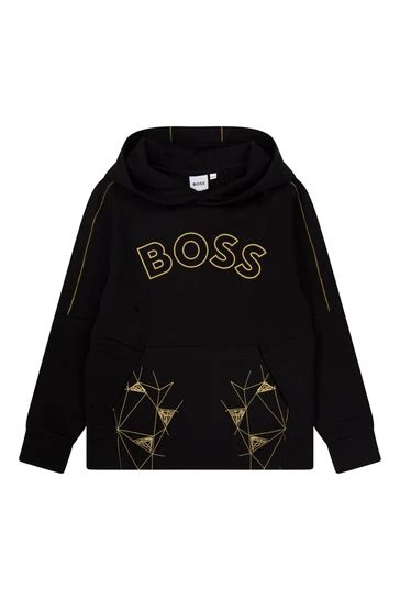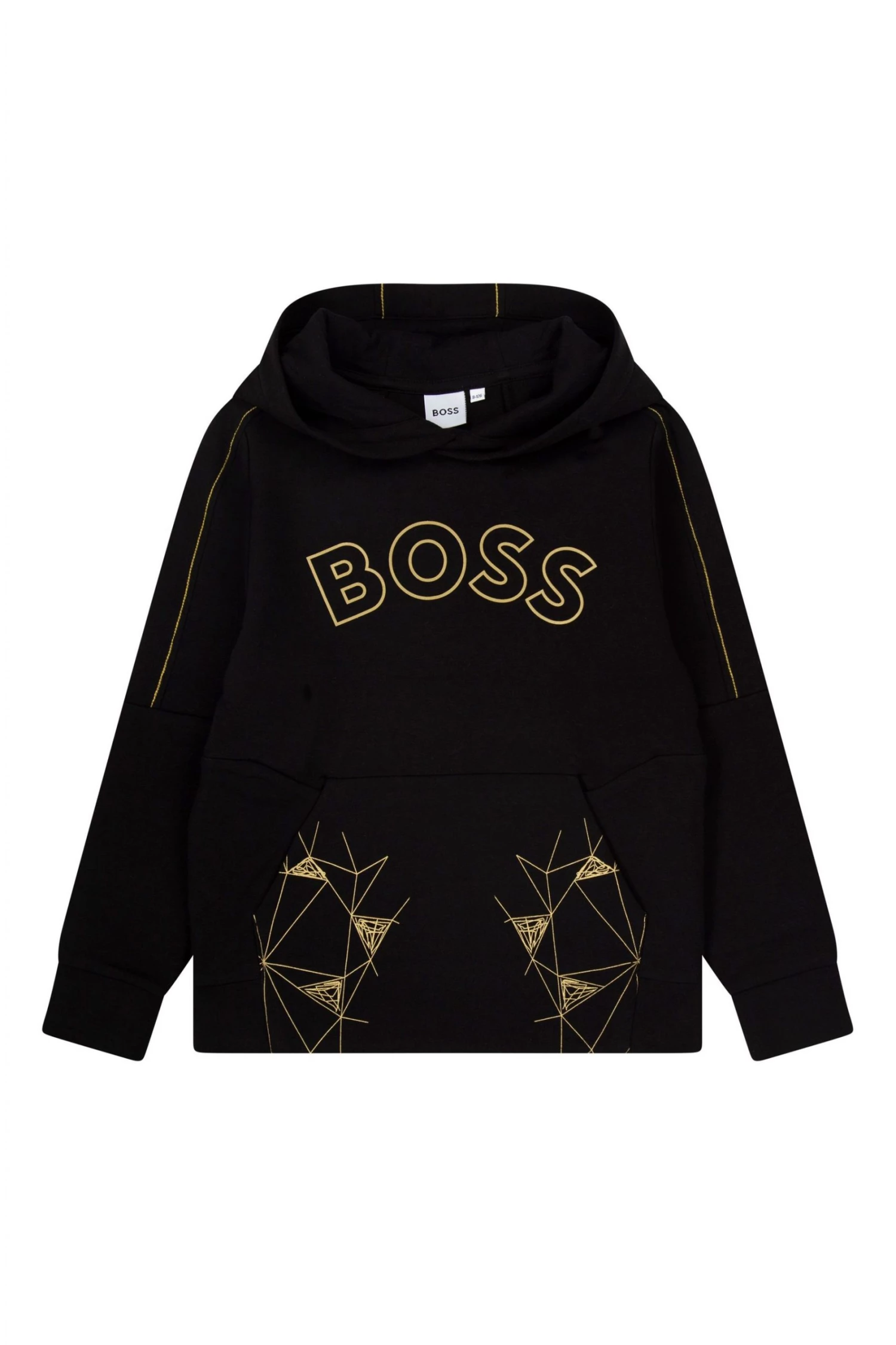 Made of cotton/polyester/elastane, this interlock hooded sweater features pocket with fancy illustration, fancy top stitching on sleeves and hood, “BOSS” print on front.