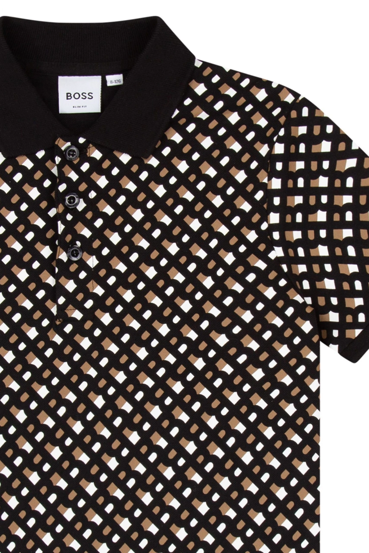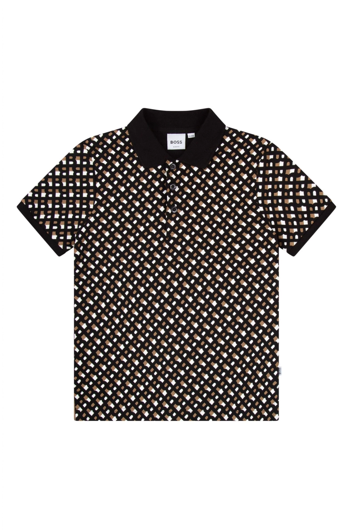 Cotton / elastane piqué short sleeves polo, buttoned fastener, monogram printed, branded woven label on the side.