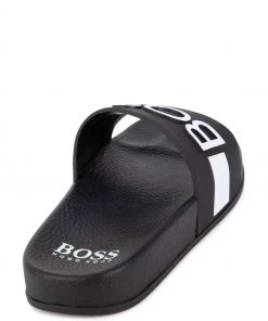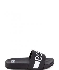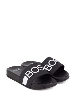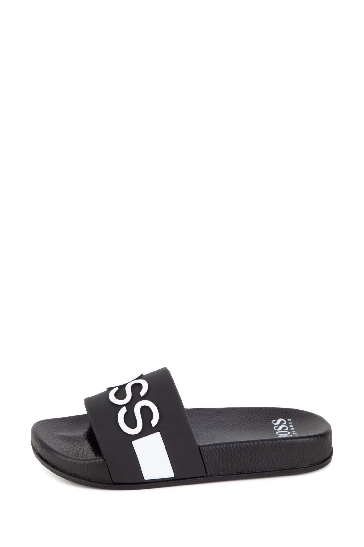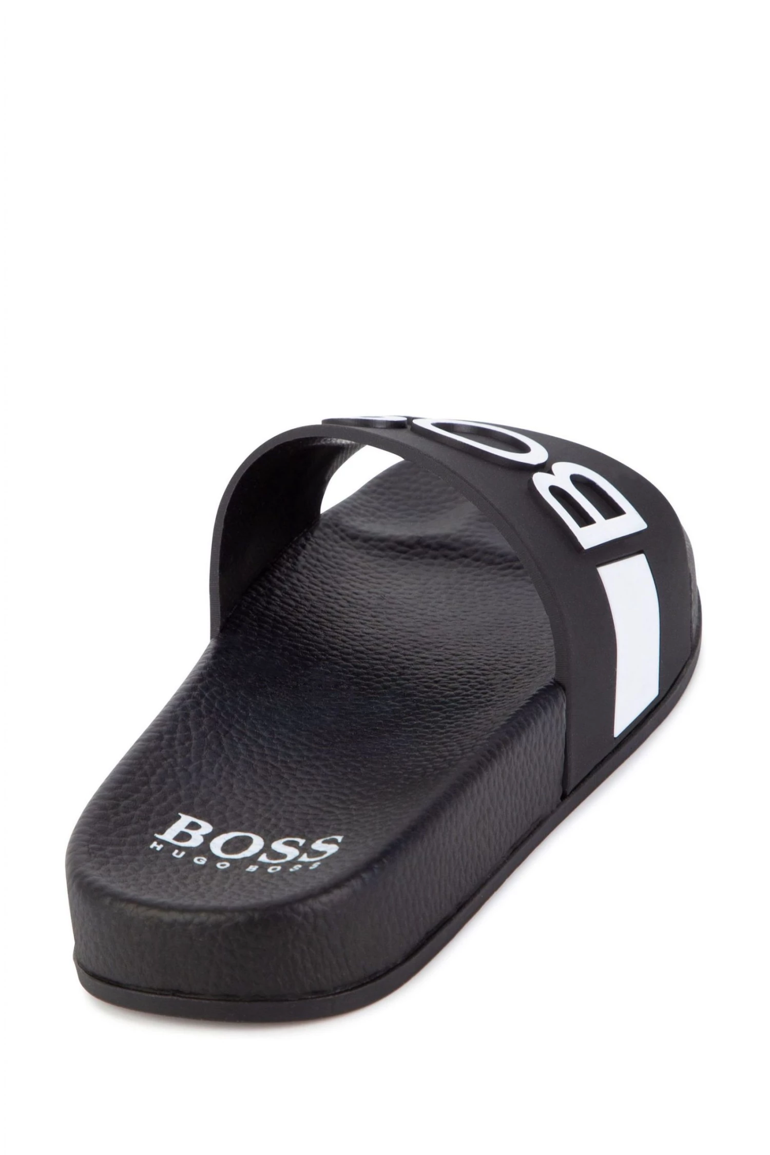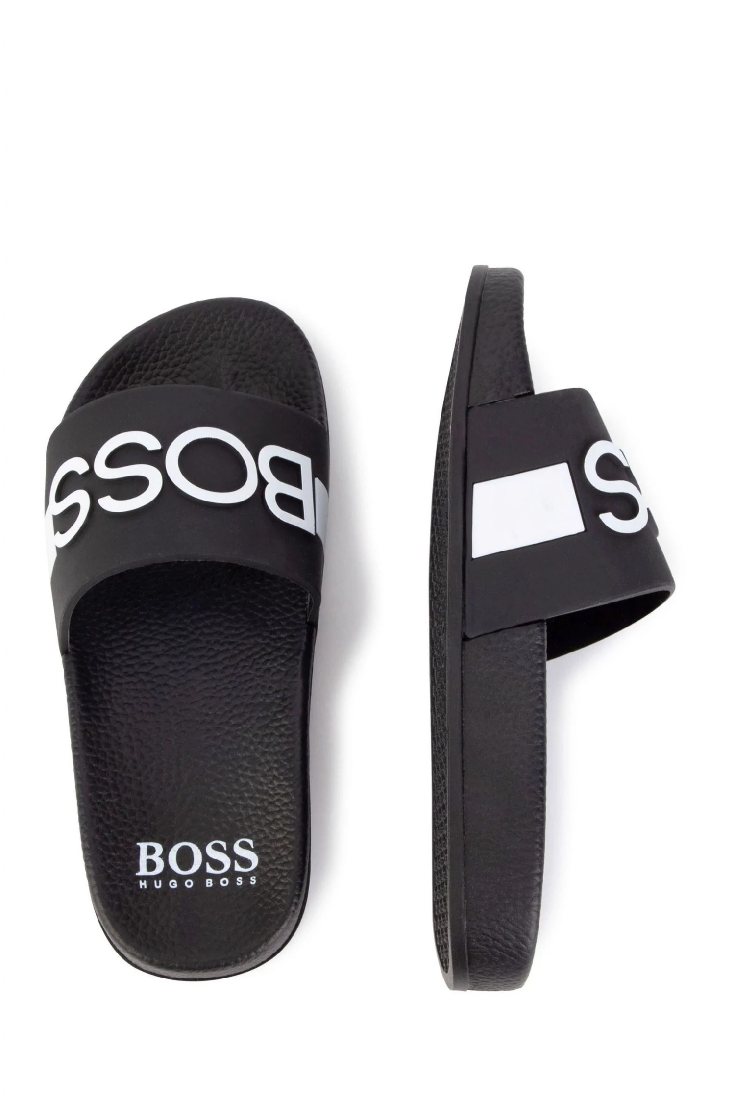 Sliders in PVC with relief effect logo BOSS on upper and printed logo on sole.