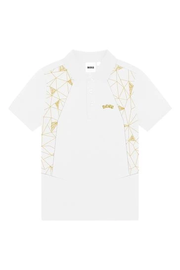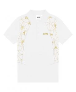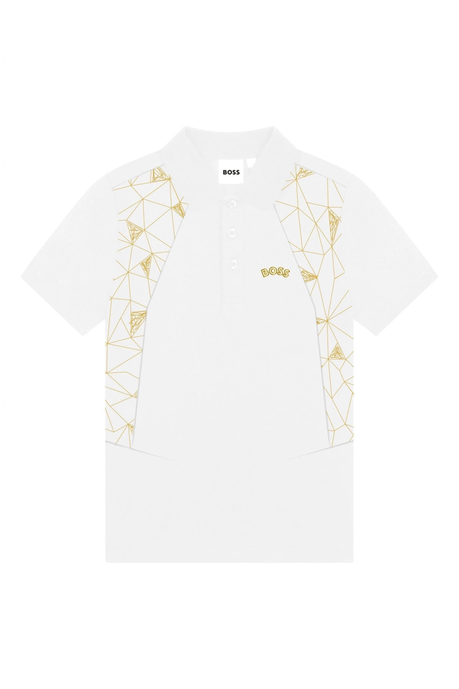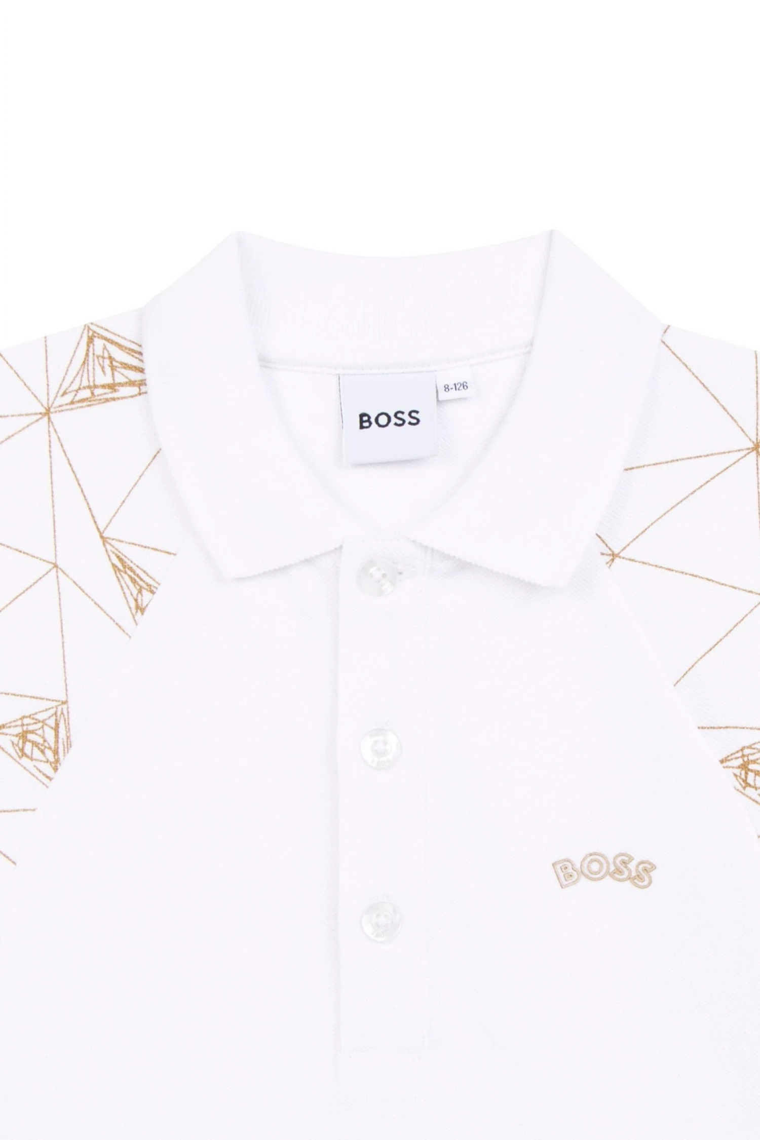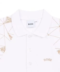 Made of cotton piqué, this short sleeves polo shirt features buttoned fastener, front yokes with fancy illustration, “BOSS” print on the chest.