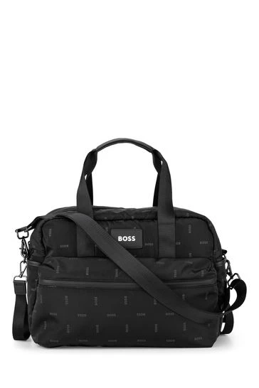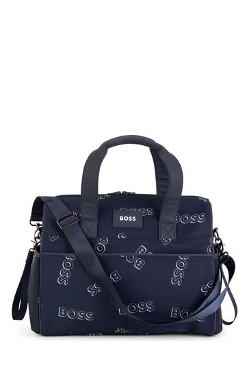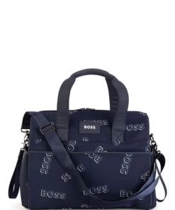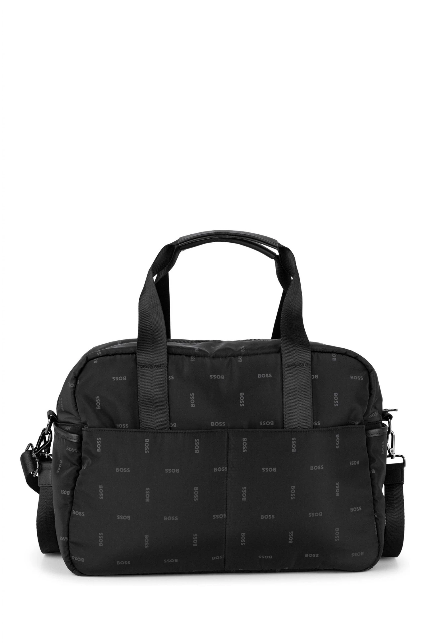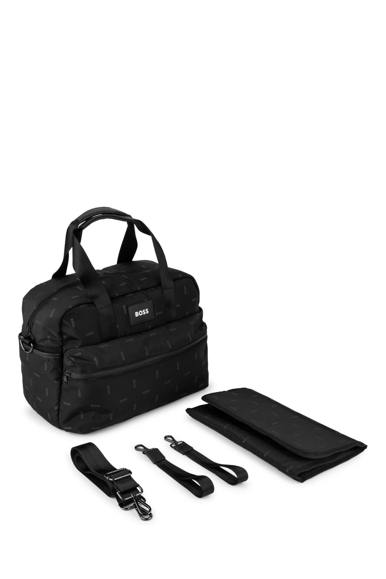 Allover changing bag in polyester. Changing mat with two stroller straps and removable strap. External large pockets. Large zip fastener. Rubber-finishing zip on front. Inside compartments. Branded patch on front.