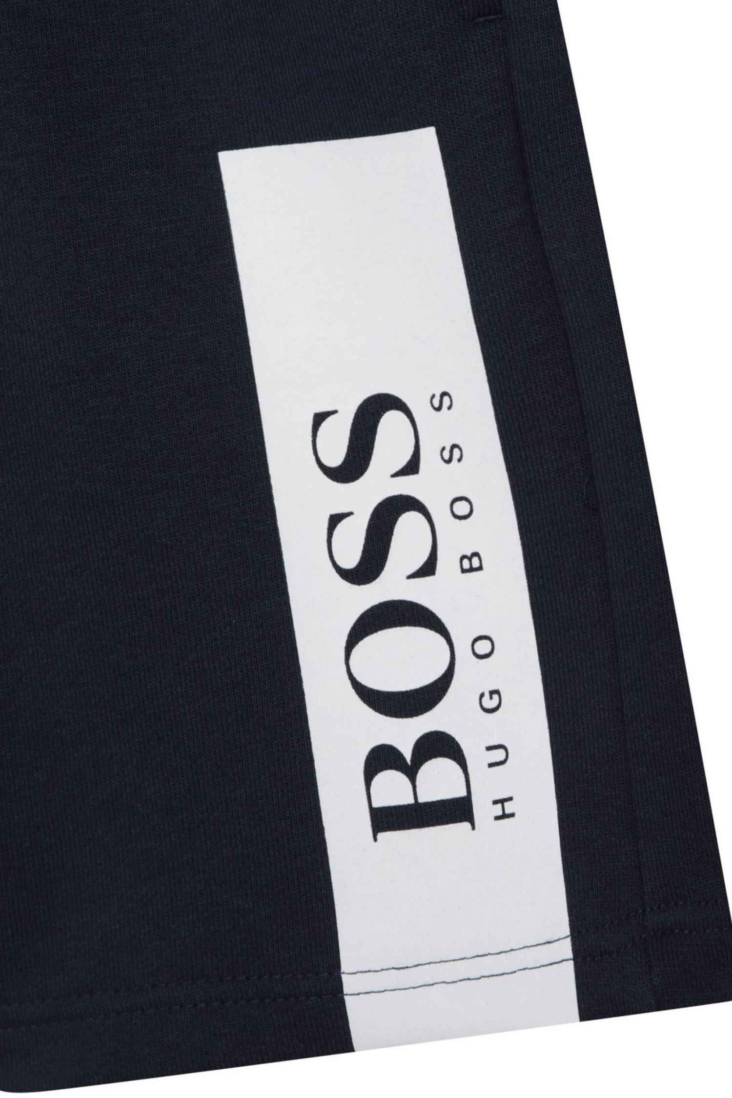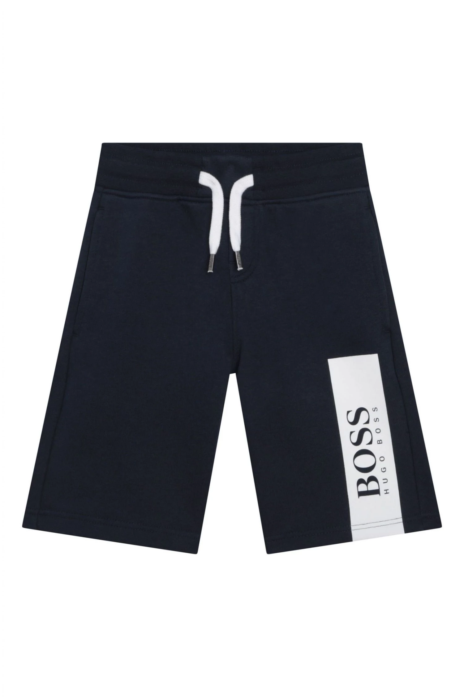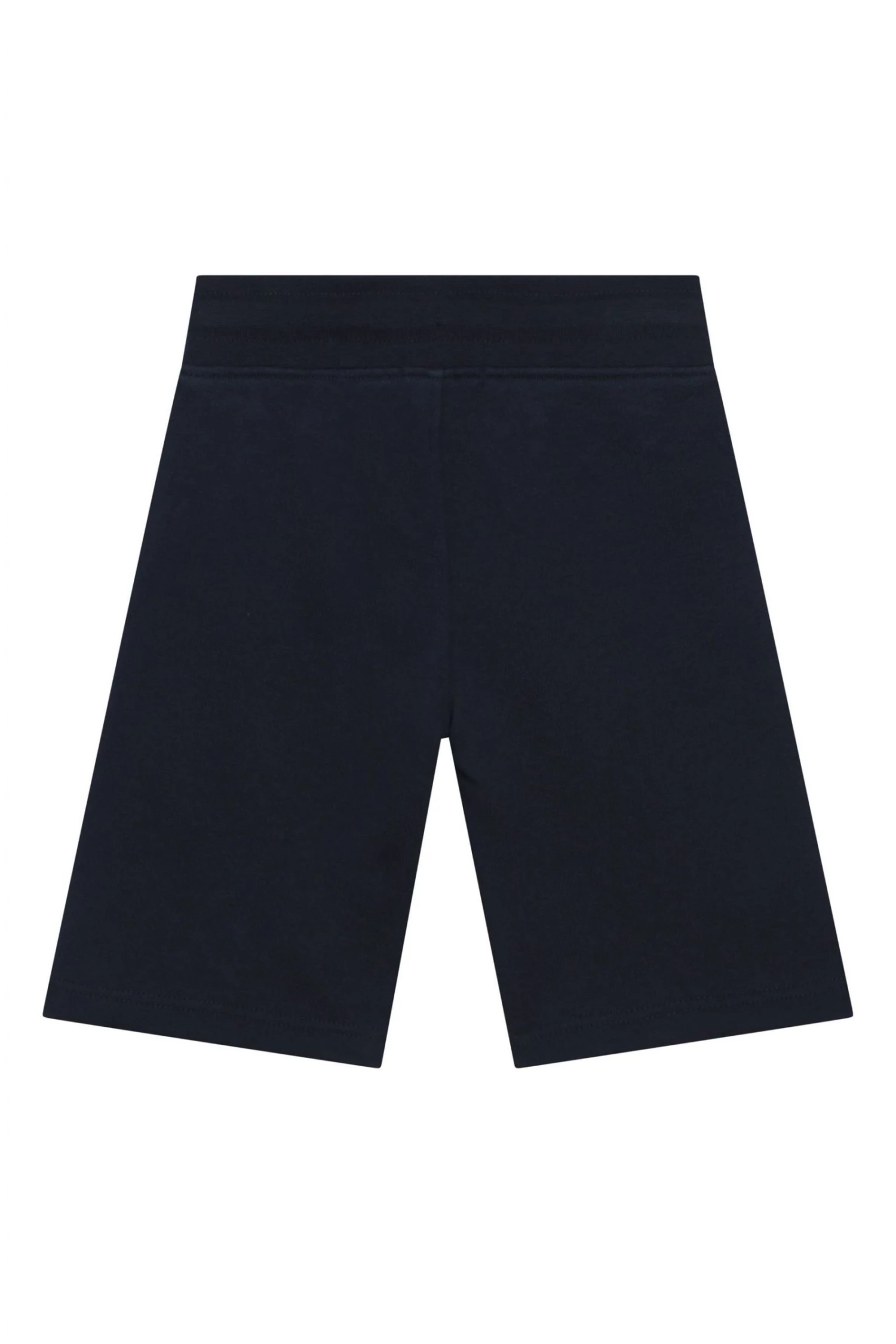 Cotton/polyester french terry track bermuda, elasticated waist with drawstring, side pockets, yokes on the sides, printed logo on the front.