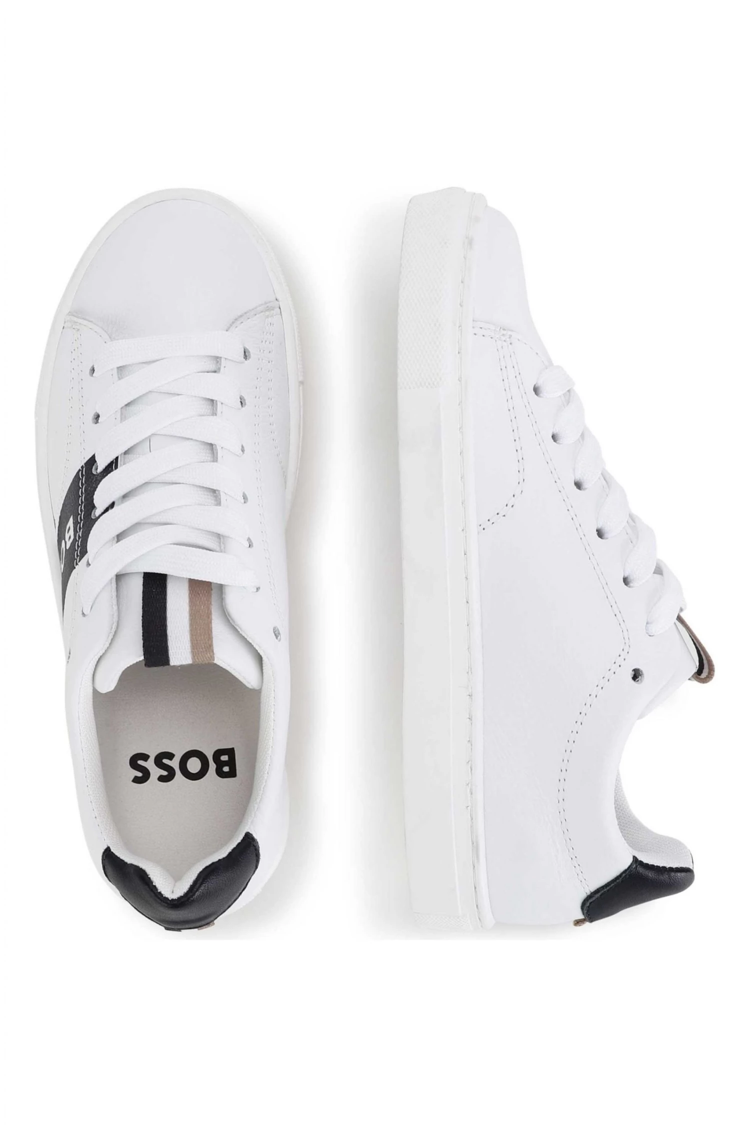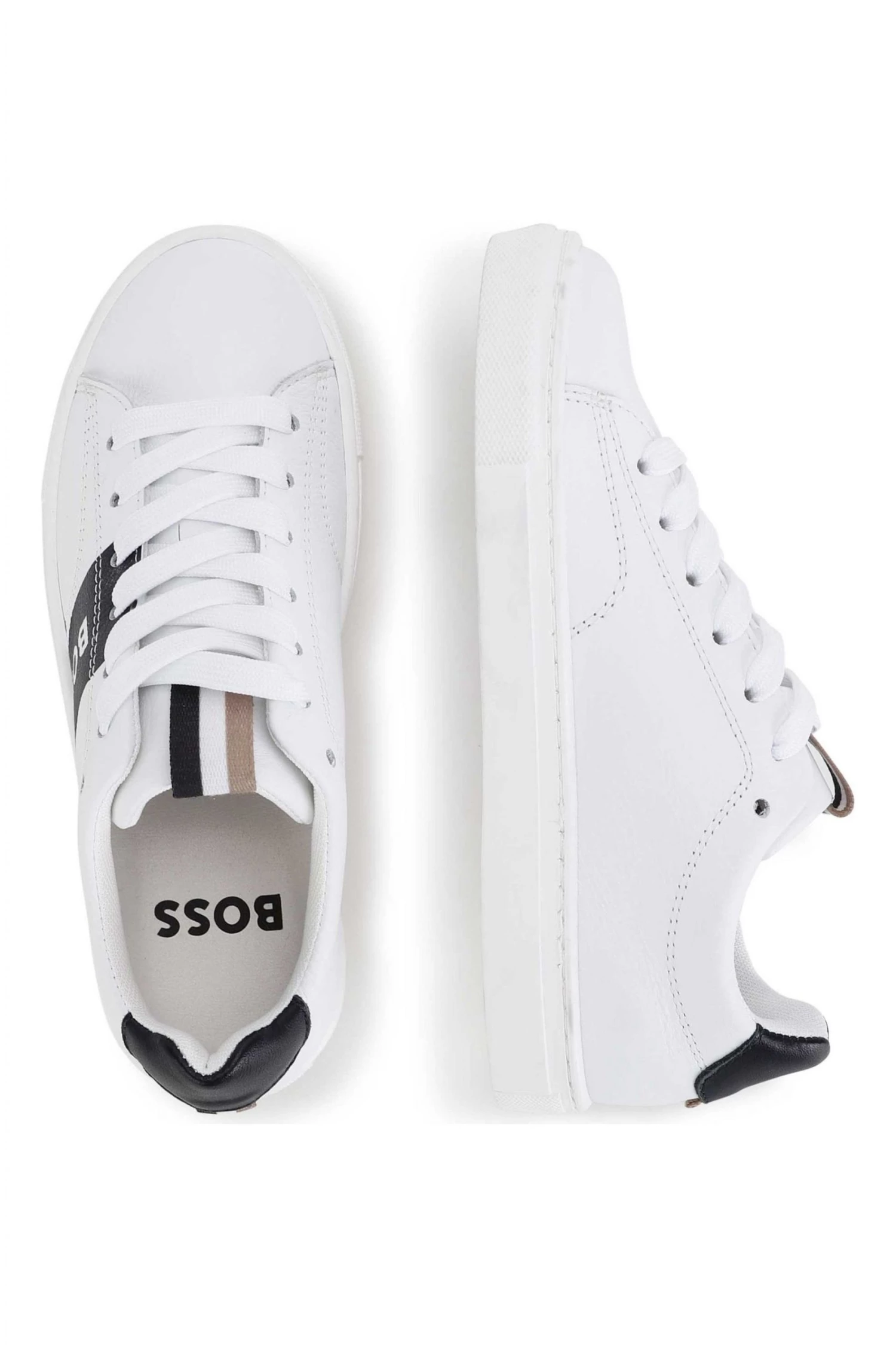 Low sneakers in cow leather, print brand on the quarter, stripe label on the tongue and at the back. Mineral tanning. Made in Portugal.