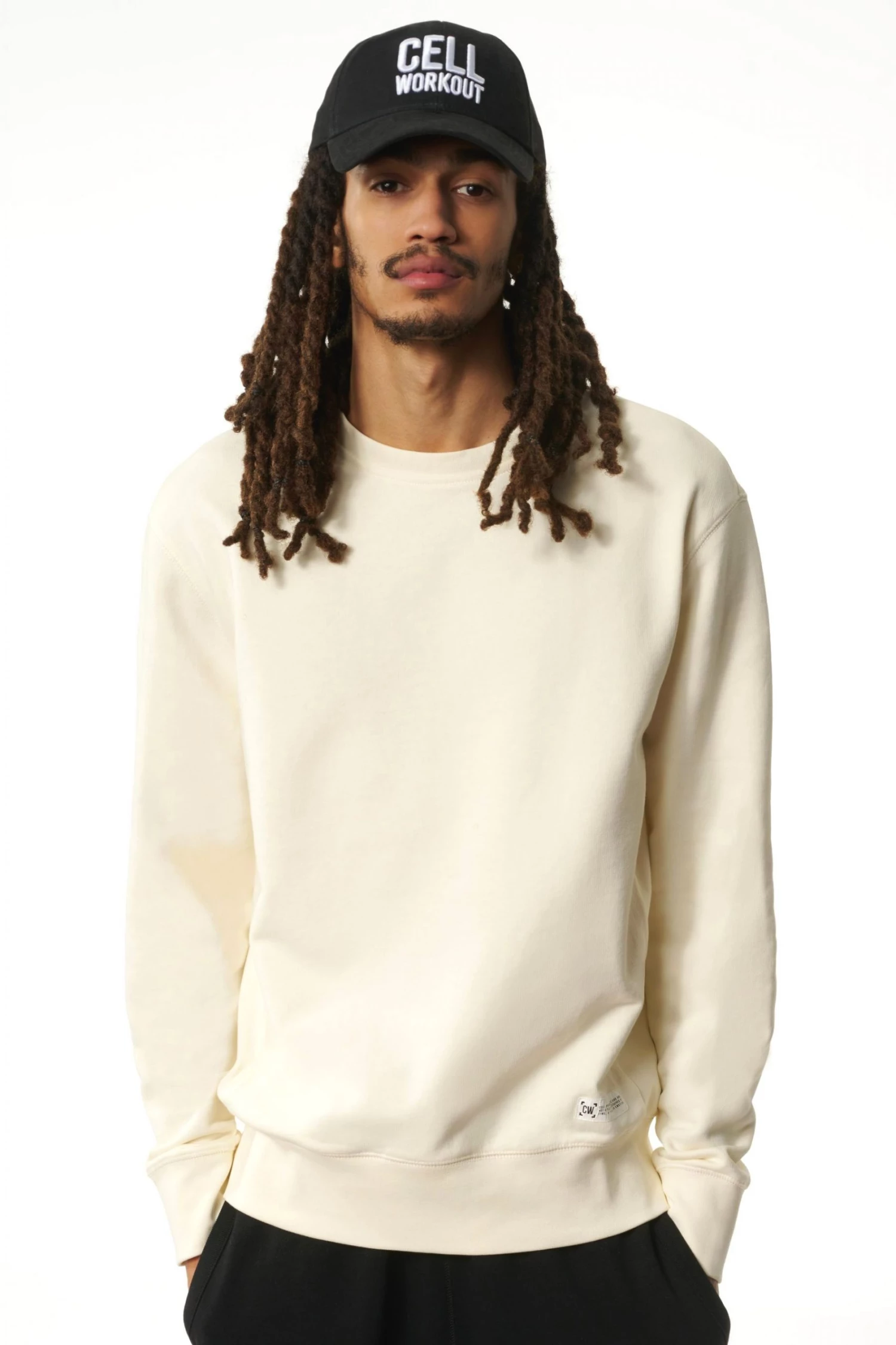 Available in Royal Blue and Ecru White this regular fit crew neck sweatshirt is designed with heavyweight sweat fabric, deep cuffed ribs and hems, and a concealed zip pocket at the side seam. Cell Workout branding logo can be found at the hem and back shoulder.