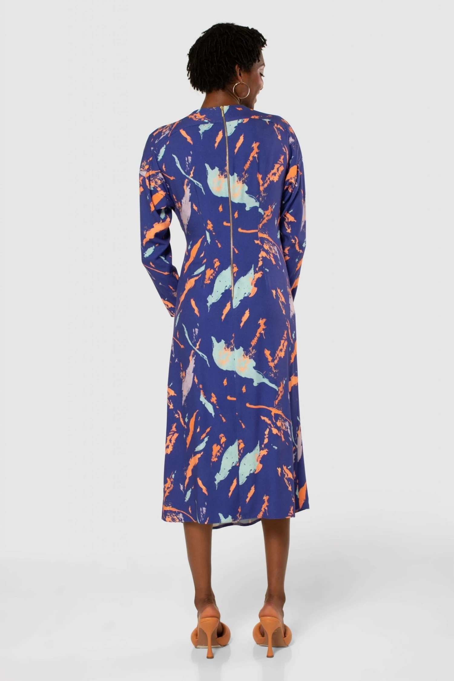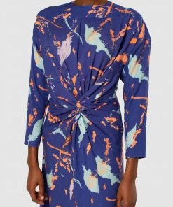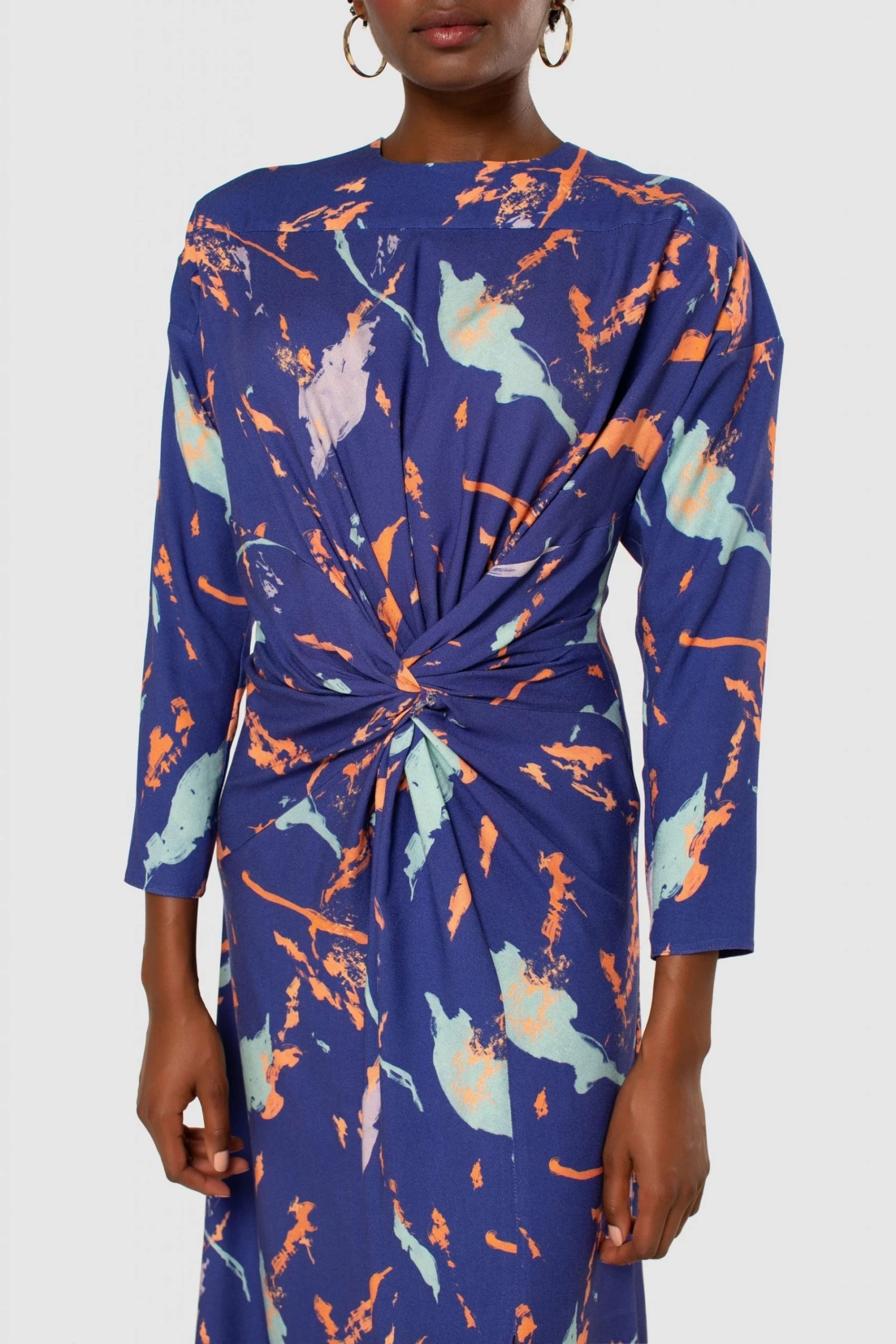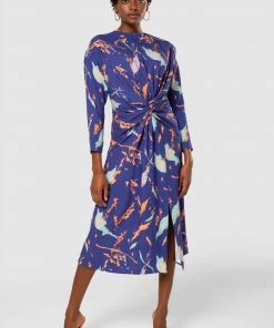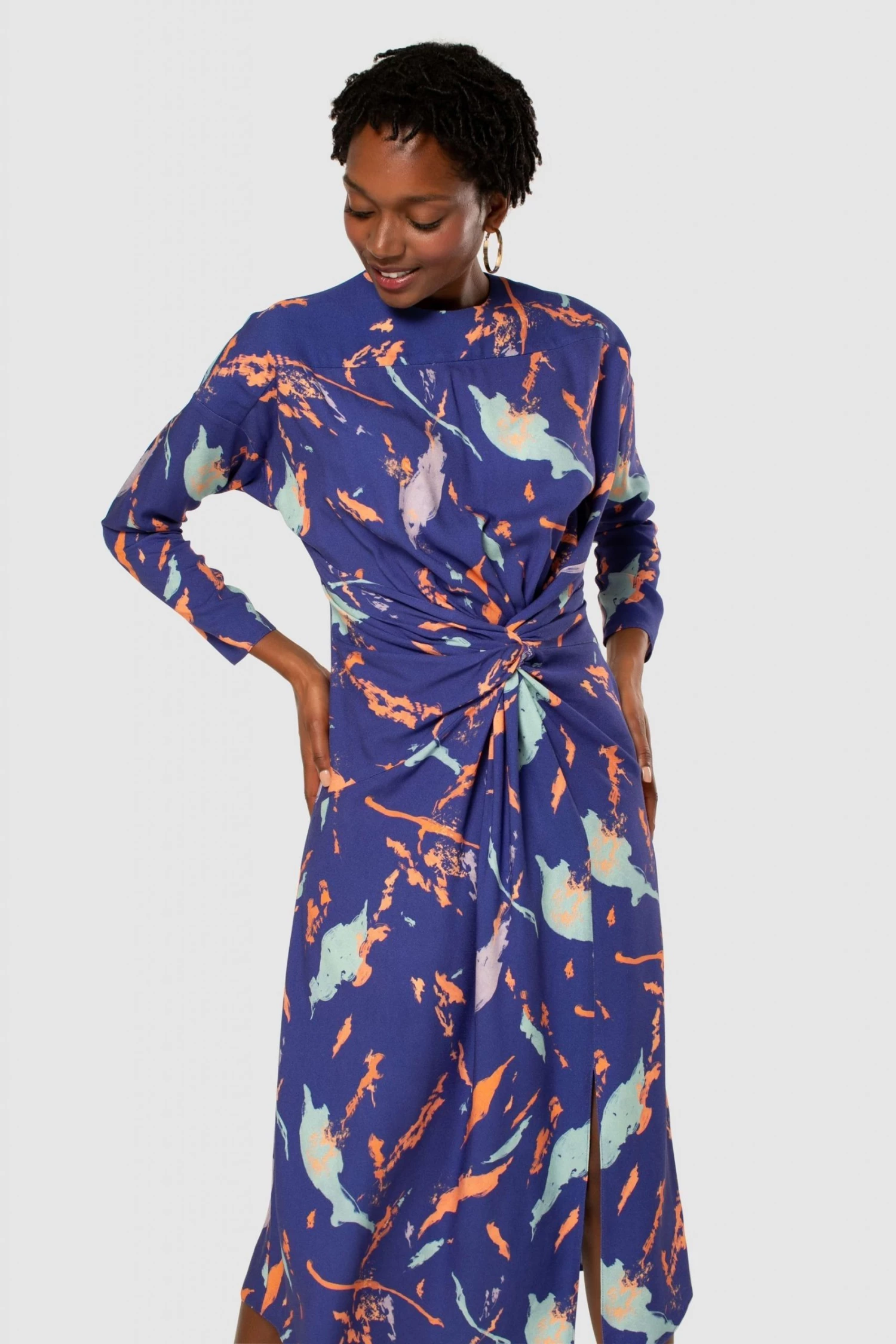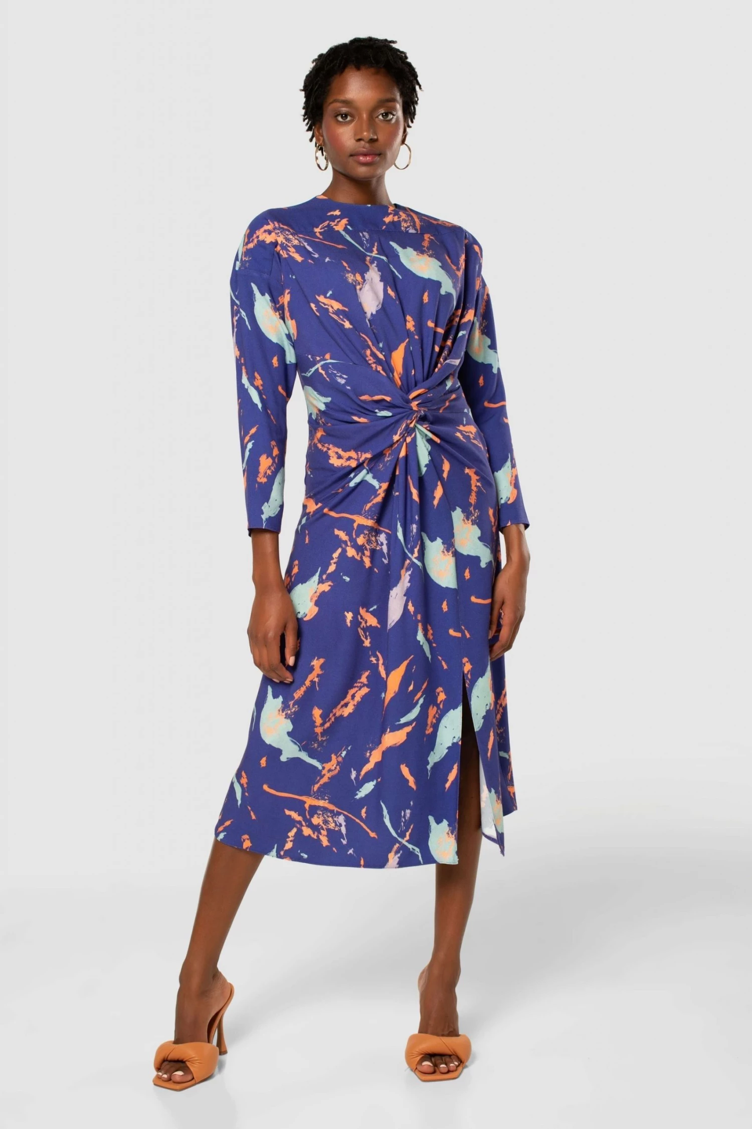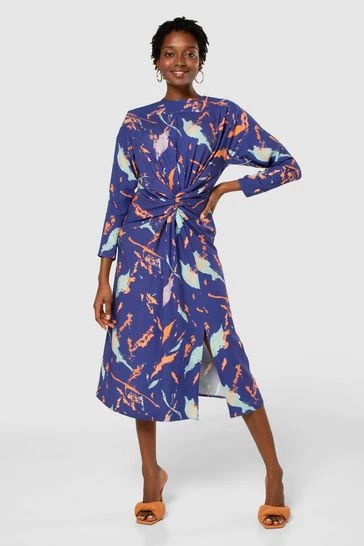 Closet London Midi Length Dress a stunning printed Dress. With Split hem and Twist front detail. Long sleeve.