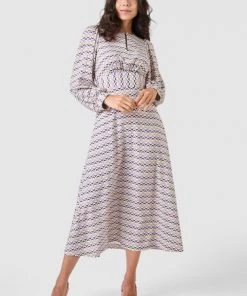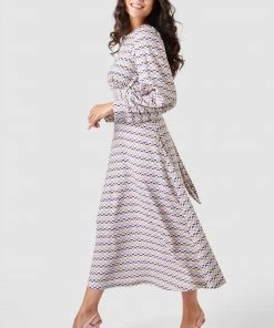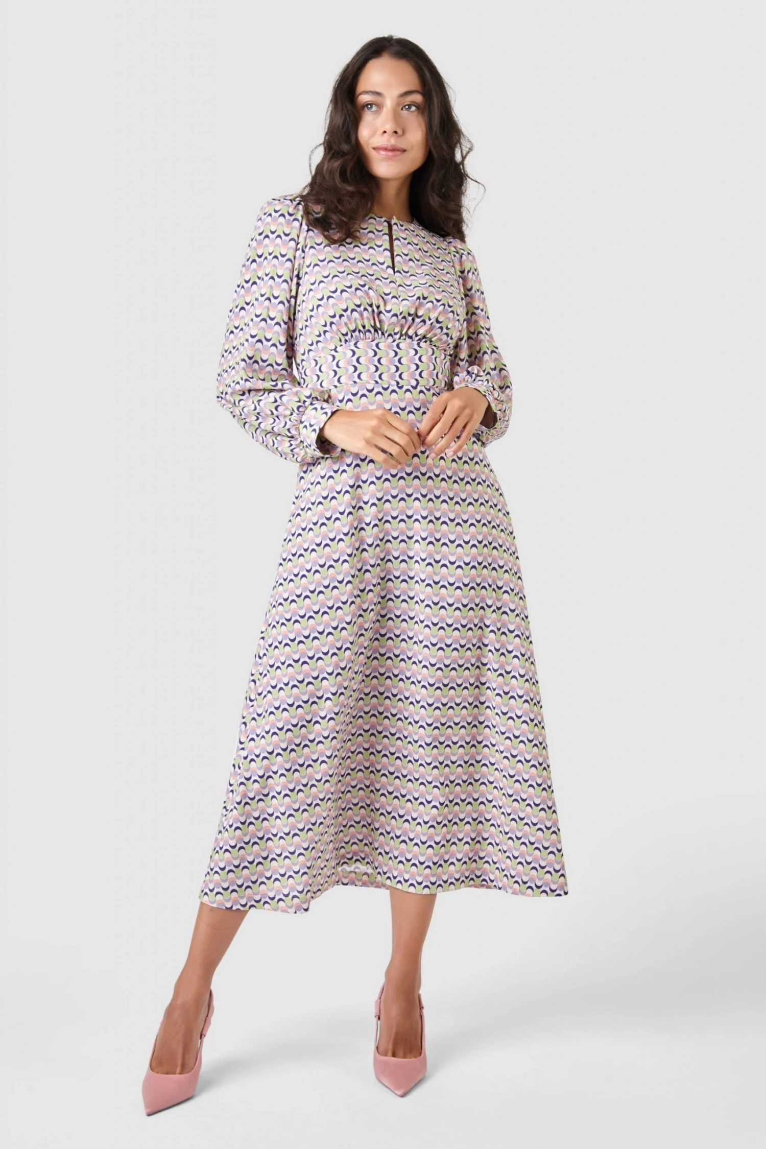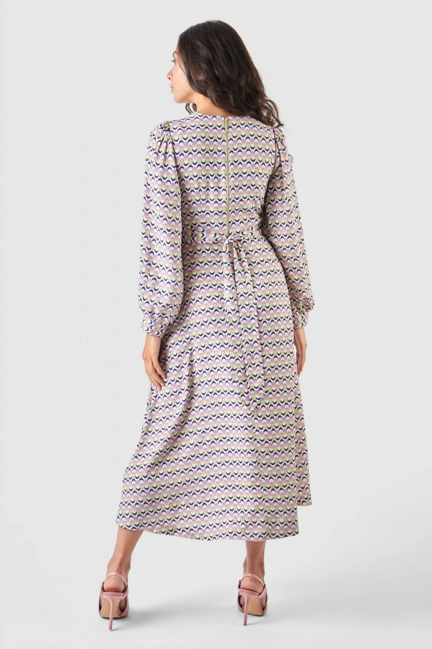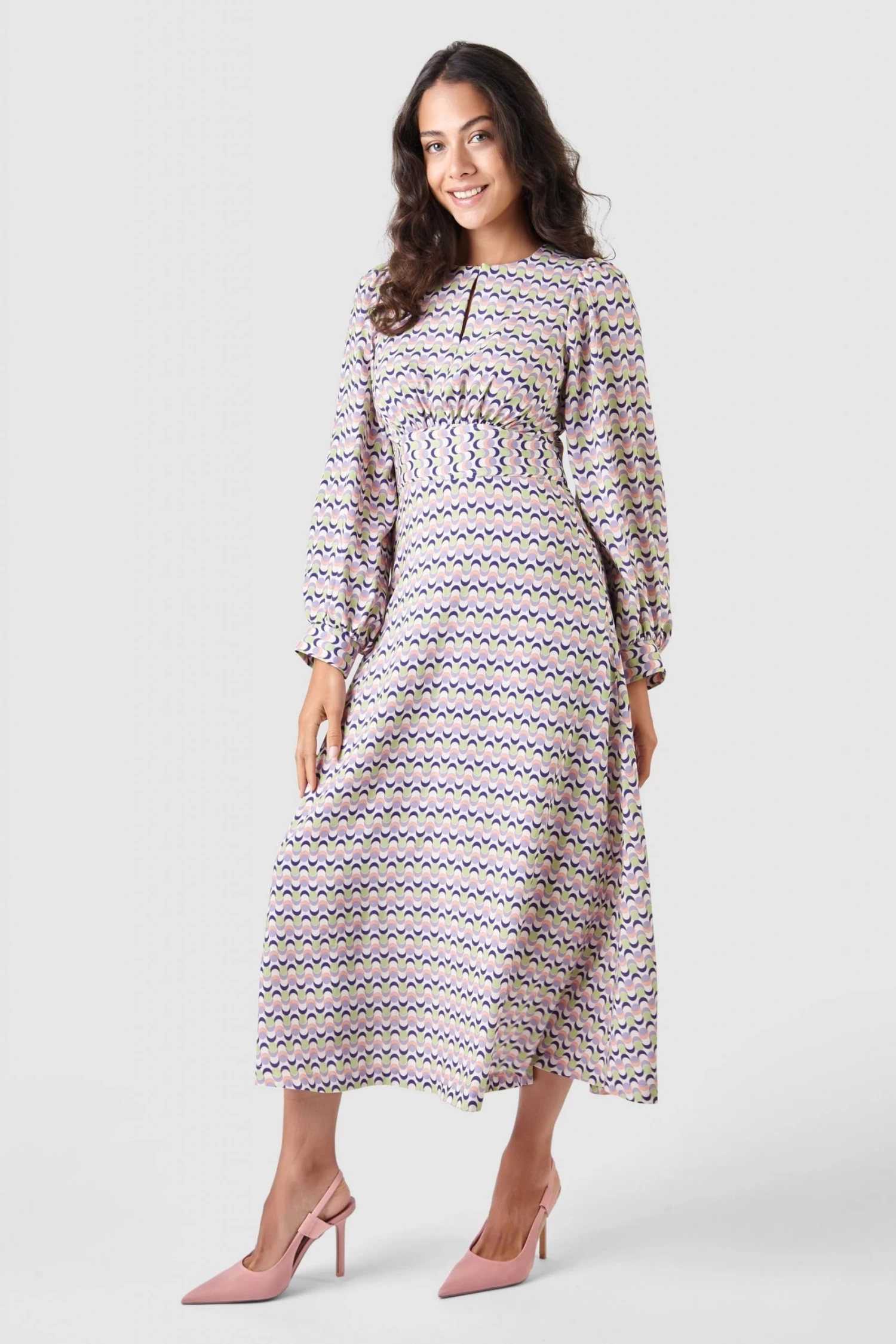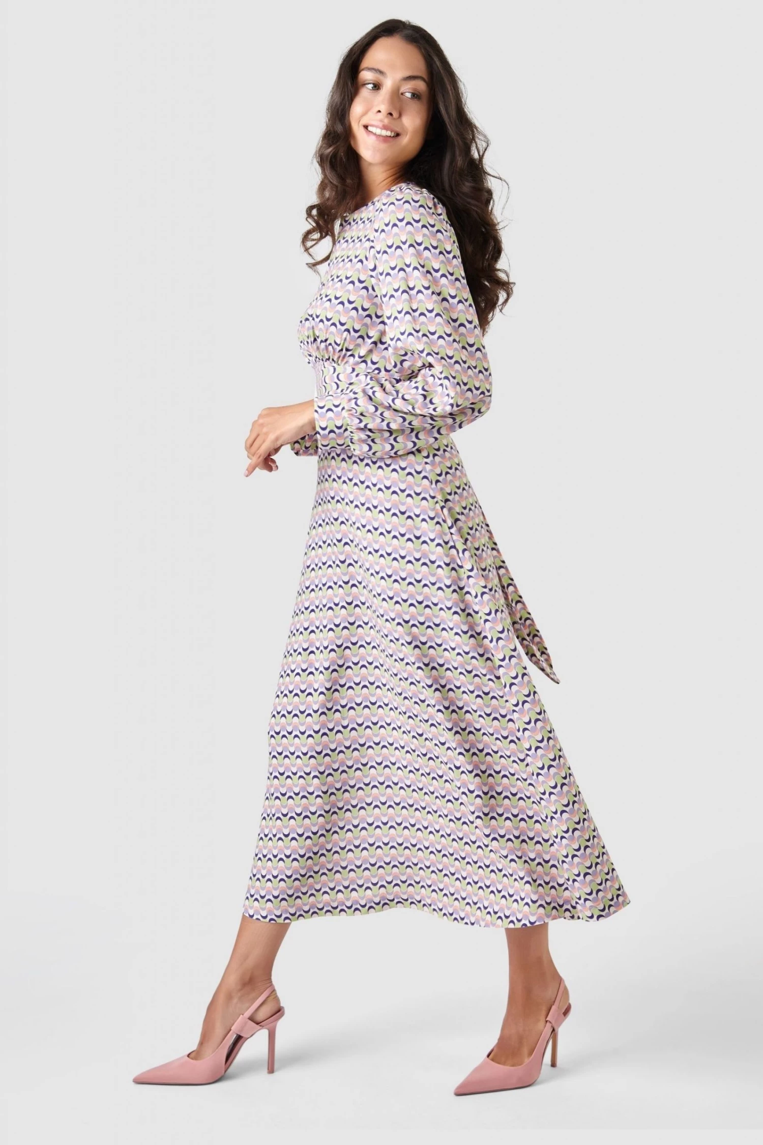 Stand out in this Closet London subtle geo print A-line midi dress. with , flowing lines, blouse sleeves, button up split front and adjustable belt to make the waist as fitted or relaxed as you like . Team with strappy flat sandals for daytime or with heels and statement earrings for full glamour.