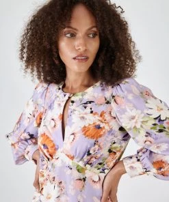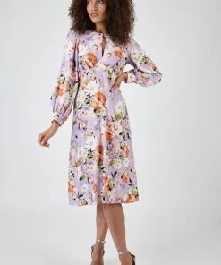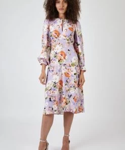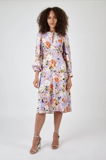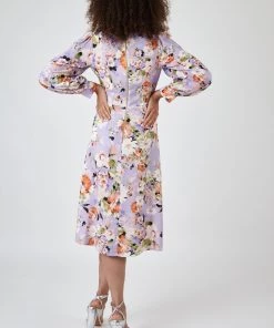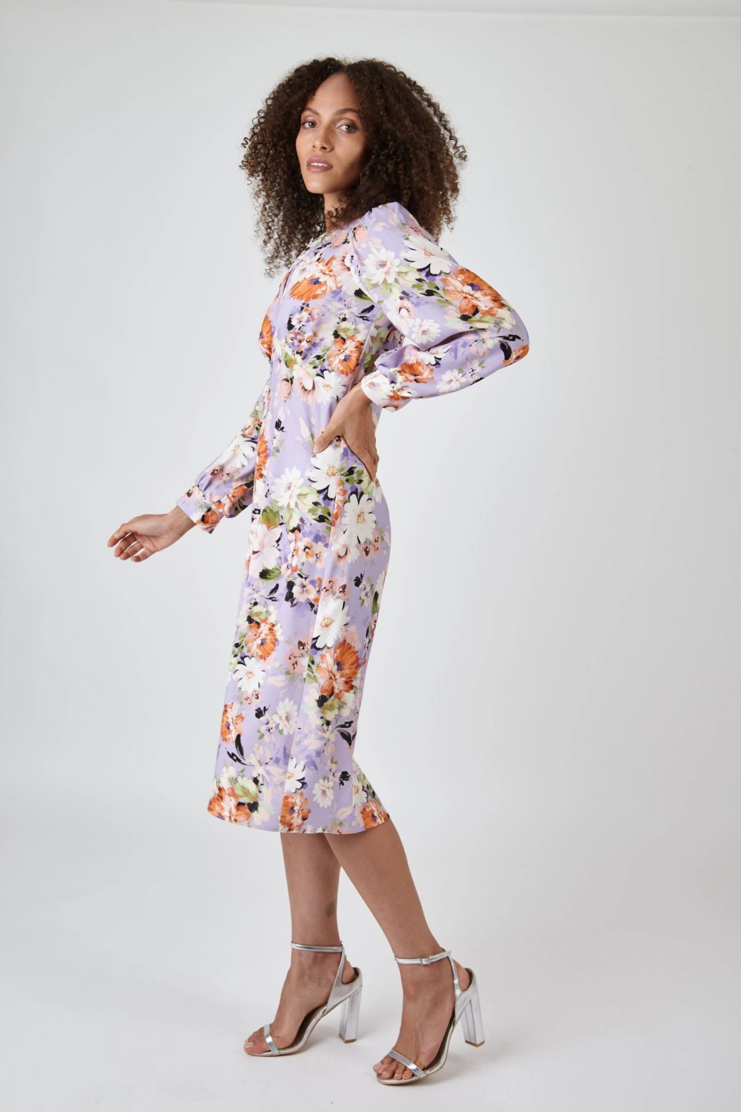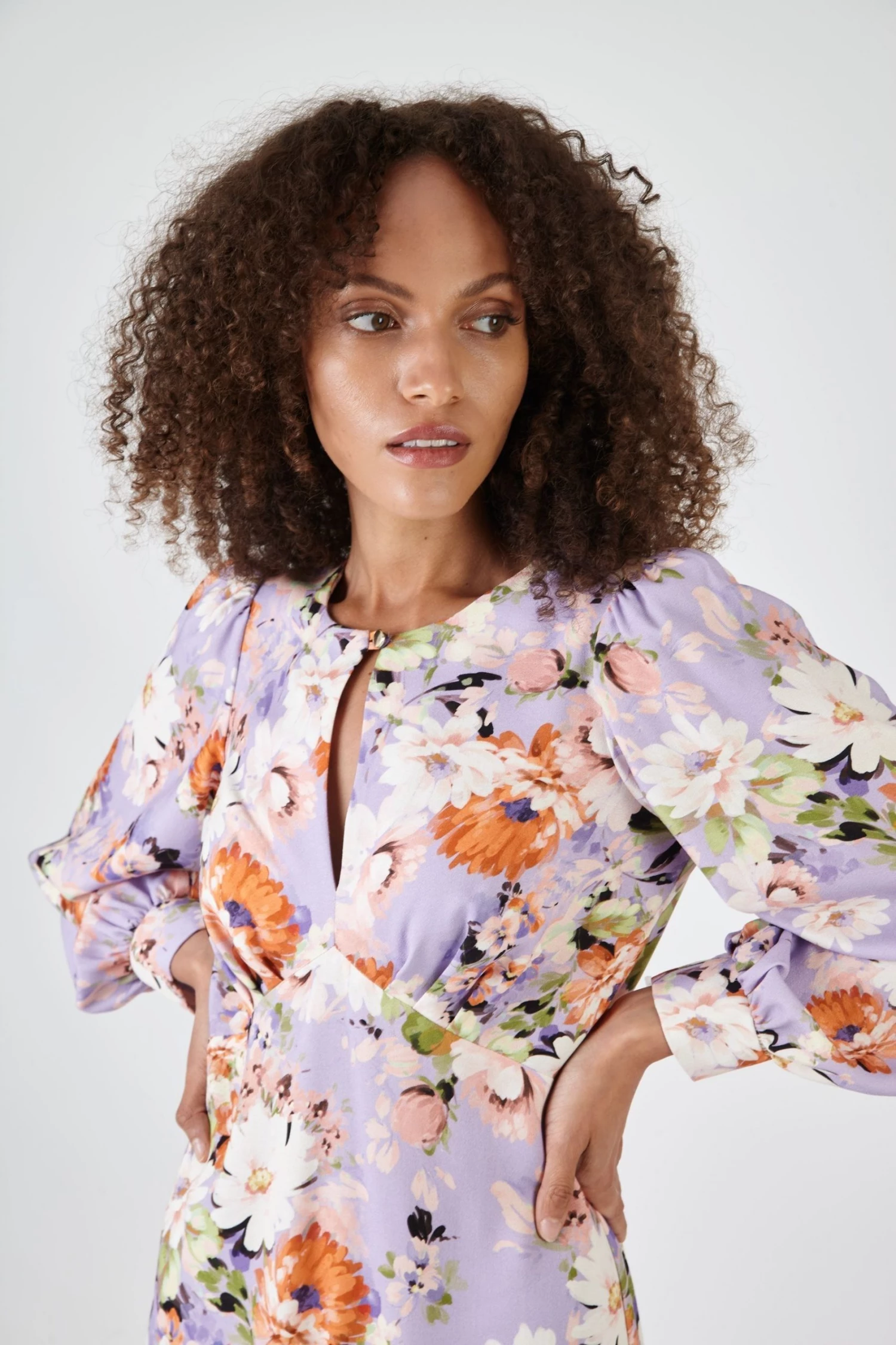 A super versatile style that is easy to dress up or down, this Closet London tea dress is designed with a gorgeous floral print in Lilac with . Made for a flattering fit that gathers at the bust and Statement Puff Sleeves.