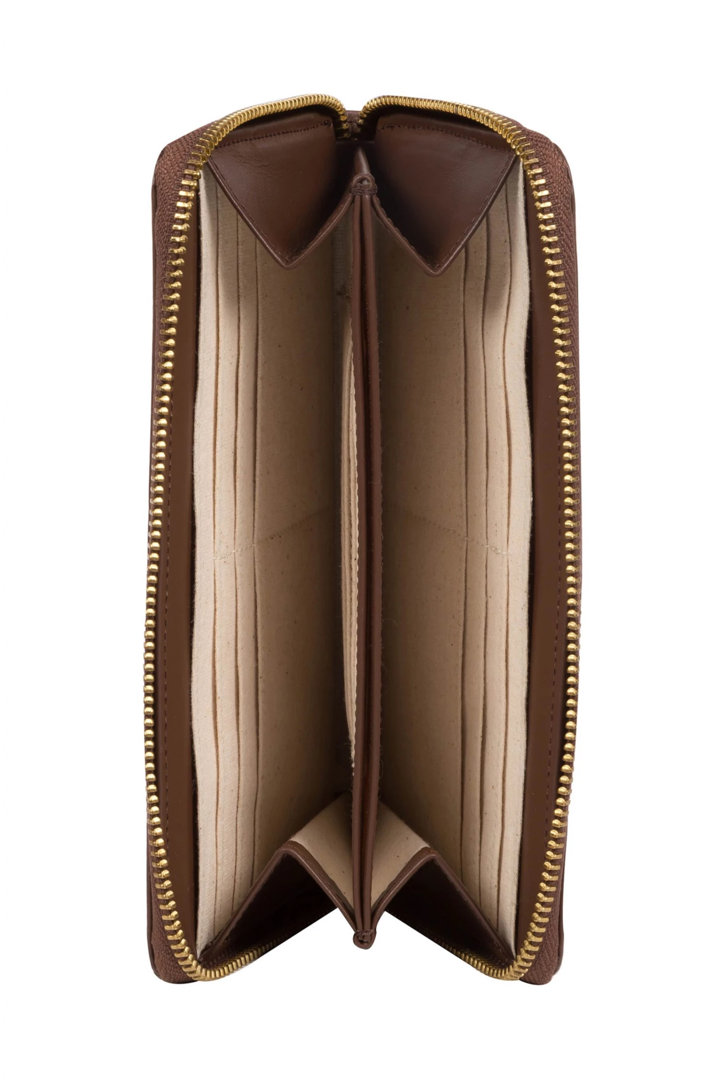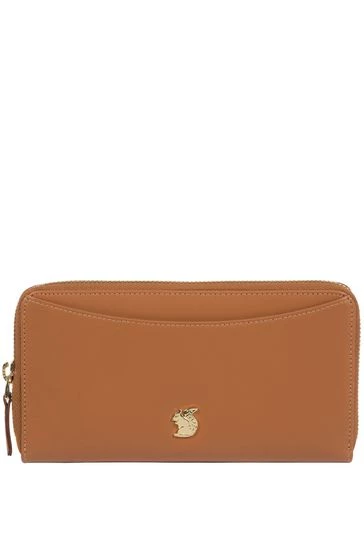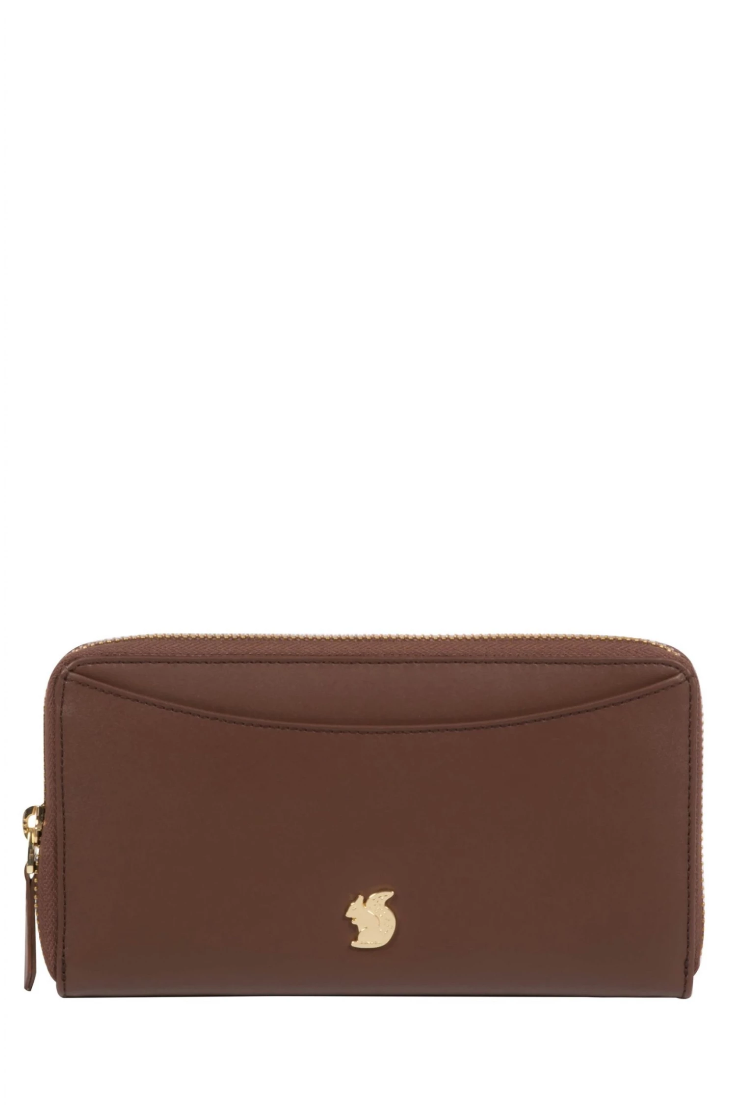 The Candy purse by Conkca London is handcrafted from natural, high-quality leather for a smooth and luxurious finish. Secured with a zip-around design concealing fifteen card slots, two large pockets and a central slip pocket, all lined with natural, untreated 100% cotton. Additional storage is provided with a stylish crescent slip pocket to the front of the purse. Adorned with the inimitable Conkca squirrel logo and finished with gold-coloured fittings and zips. Comes presented in the Conkca London cotton pouch, perfect for gifting.