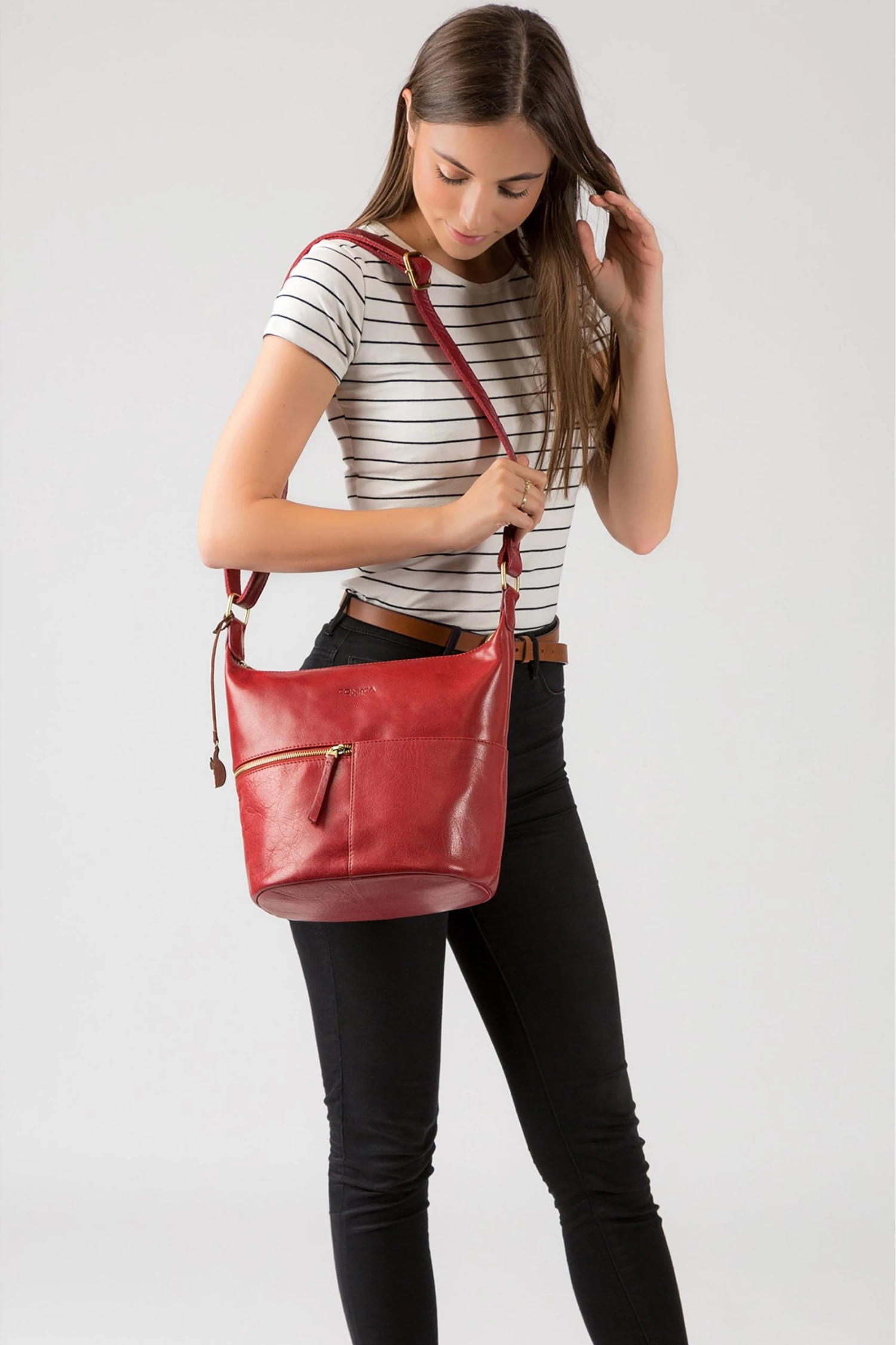 Part of the Conkca Originals collection, featuring classic designs reinvented with contemporary craftmanship, the ‘Kristin’ shoulder bag is handcrafted from genuine, full-grain leather for a luxuriously distinct finish. Secured with a zip-top, the central compartment is fully lined with natural, untreated 100% cotton and features three interior pockets, ideal for a smartphone, purse and keys. Additional storage is provided on the exterior with dual pouches and zipped pockets, perfect for when you are on the go. Comes with adjustable and durable fabric straps for a comfortable fit and a leather grab handle. Finished with the iconic Conkca logo and charm for a touch of sophistication.