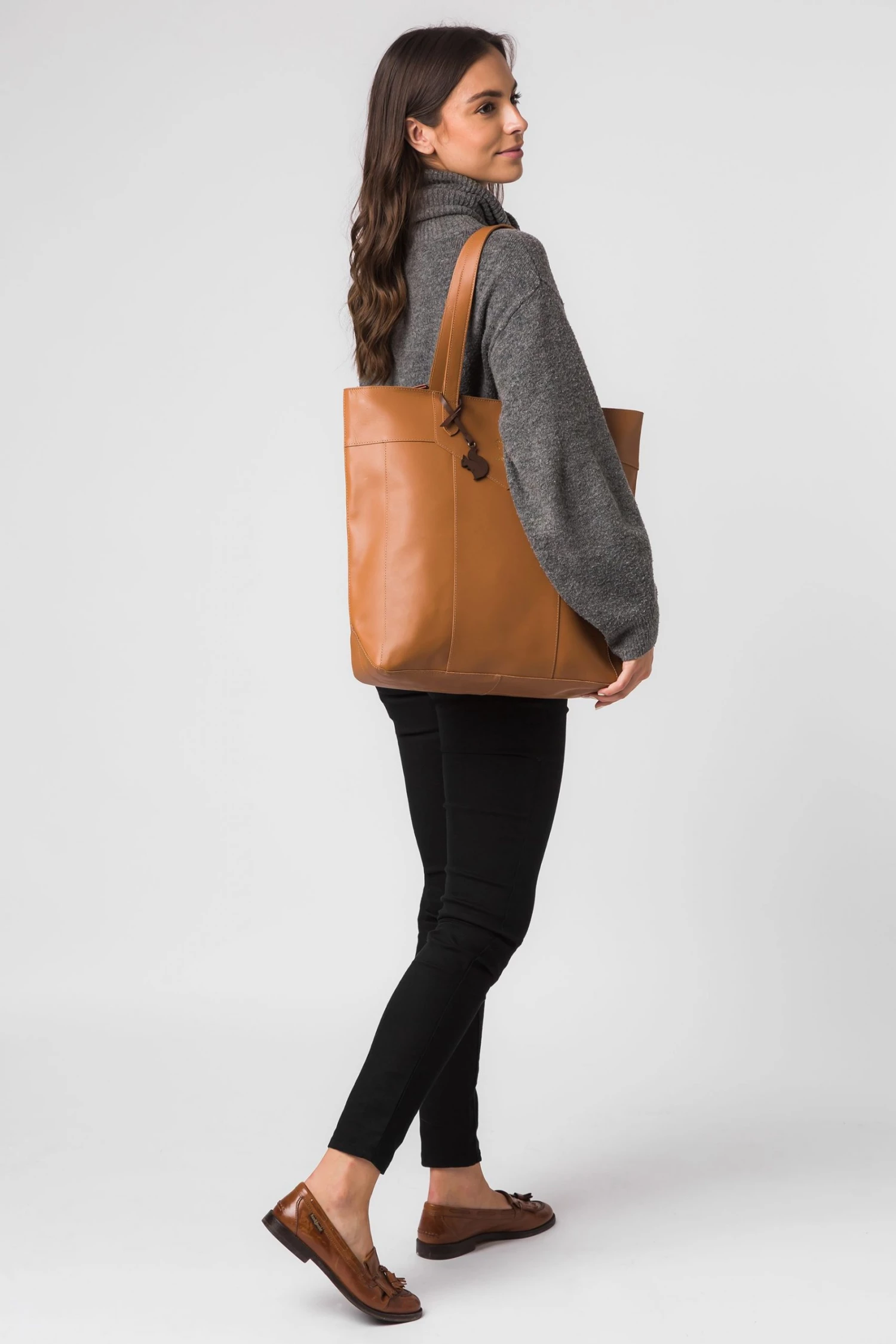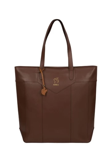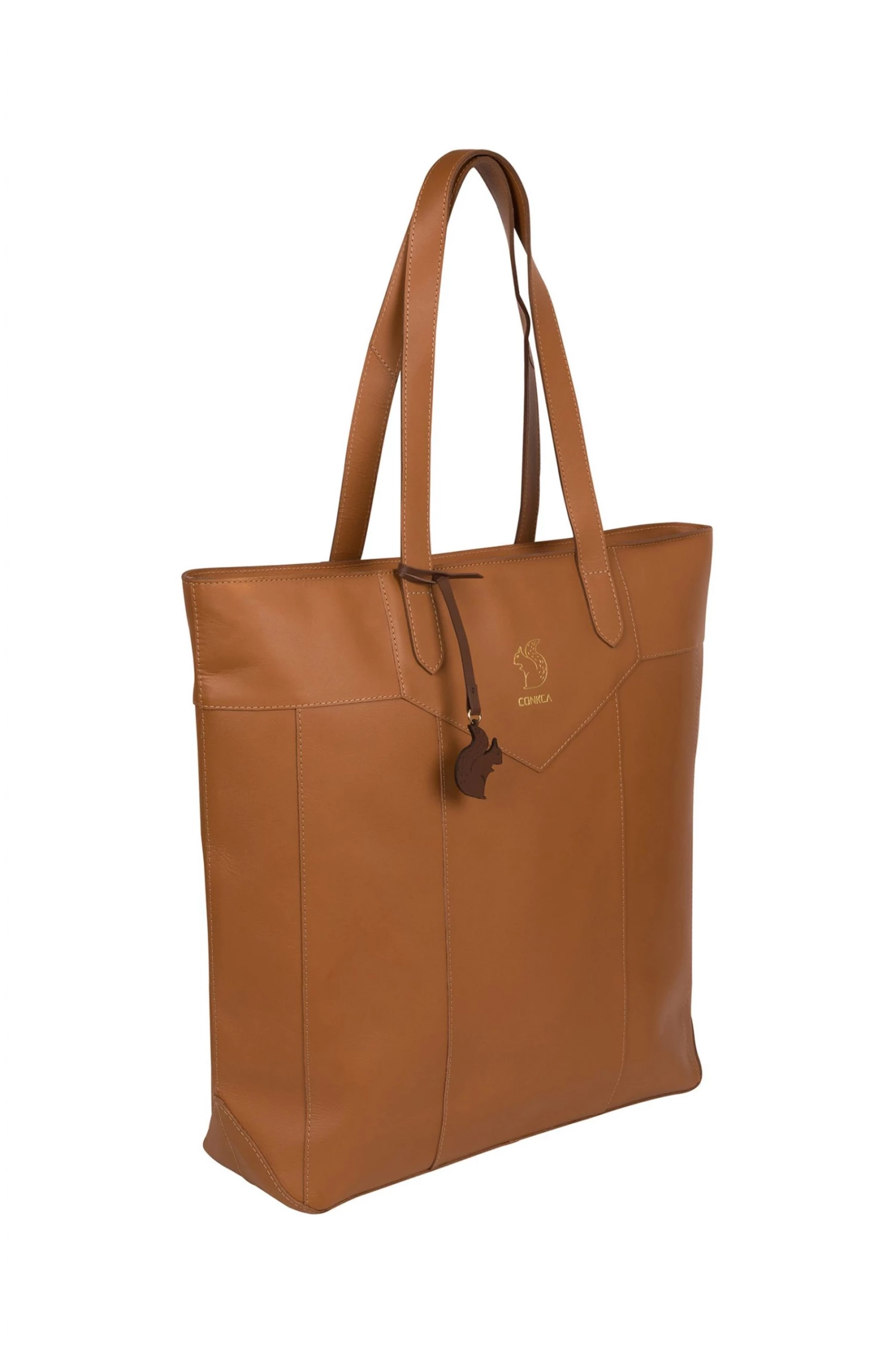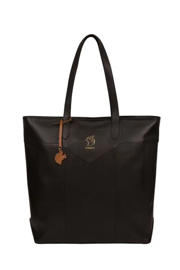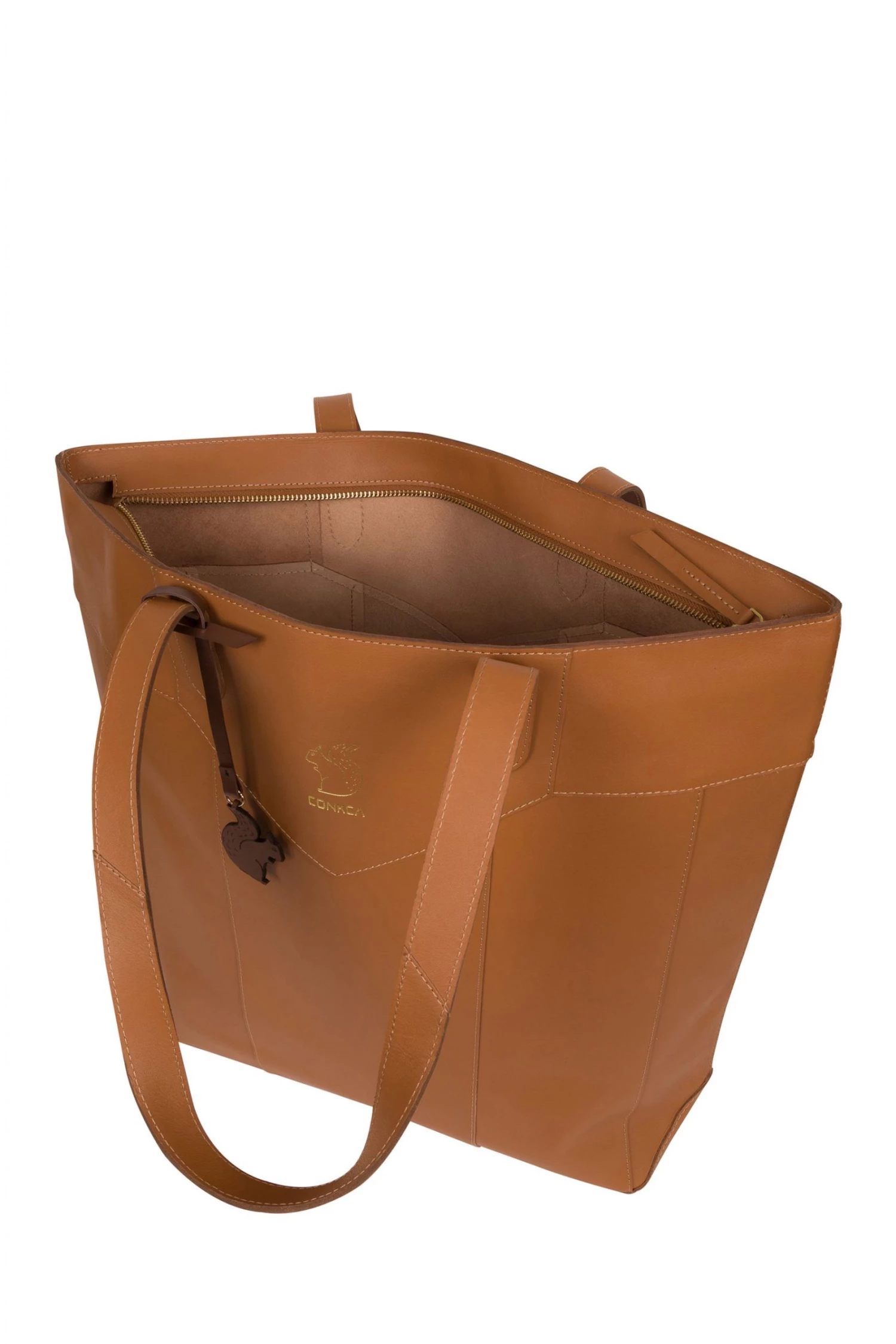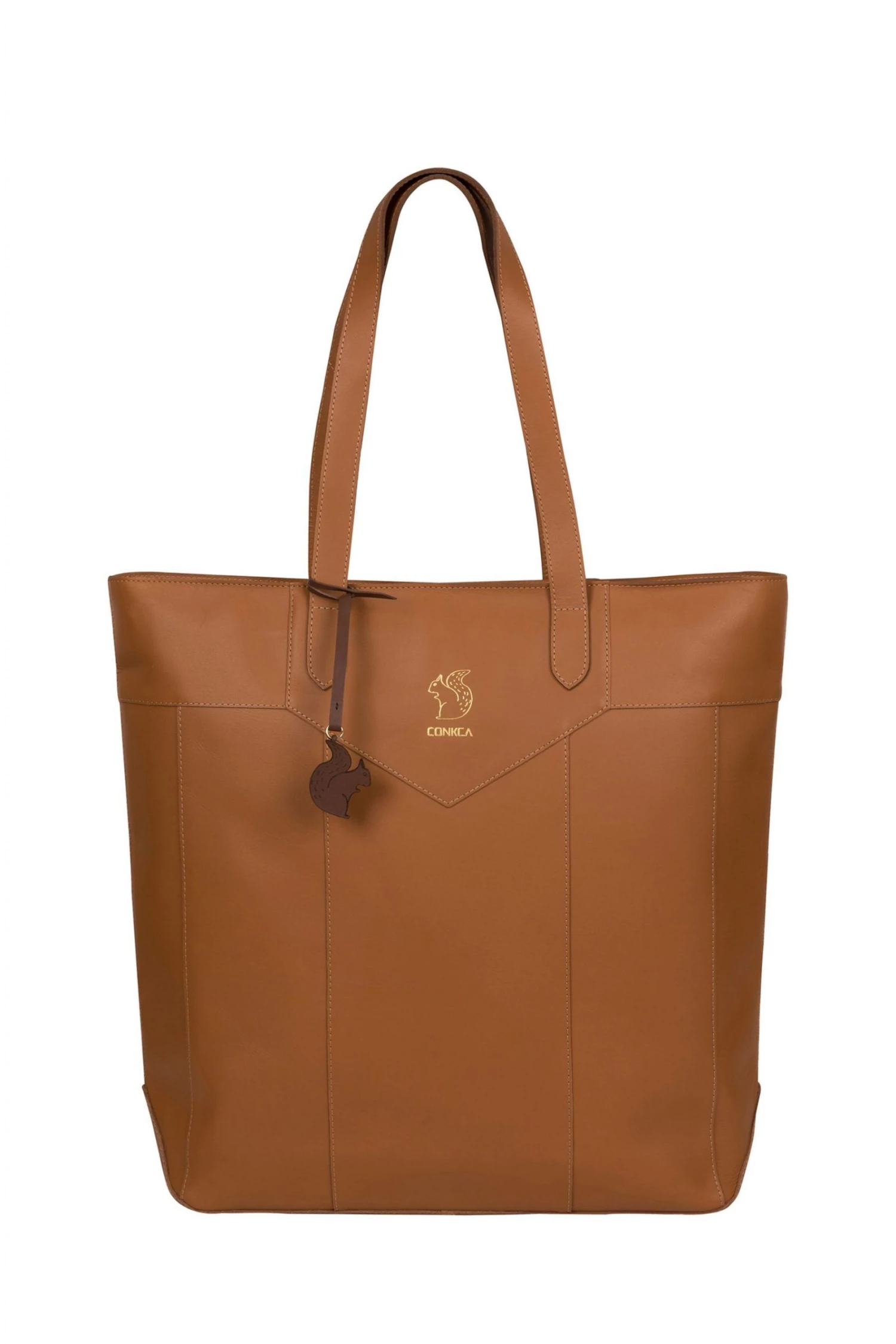 The Eliza tote bag from Conkca London is handcrafted from high-quality vegetable-tanned gold standard leather for a smooth and sophisticated finish. A zip-over top fastening keeps contents secure and features a fuss-free and spacious central compartment that has an unlined, soft to the touch natural leather interior. Finished with matching leather carry handles and adorned with the inimitable Conkca squirrel charm and logo.