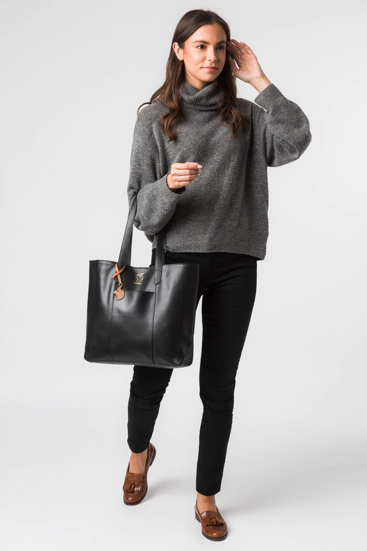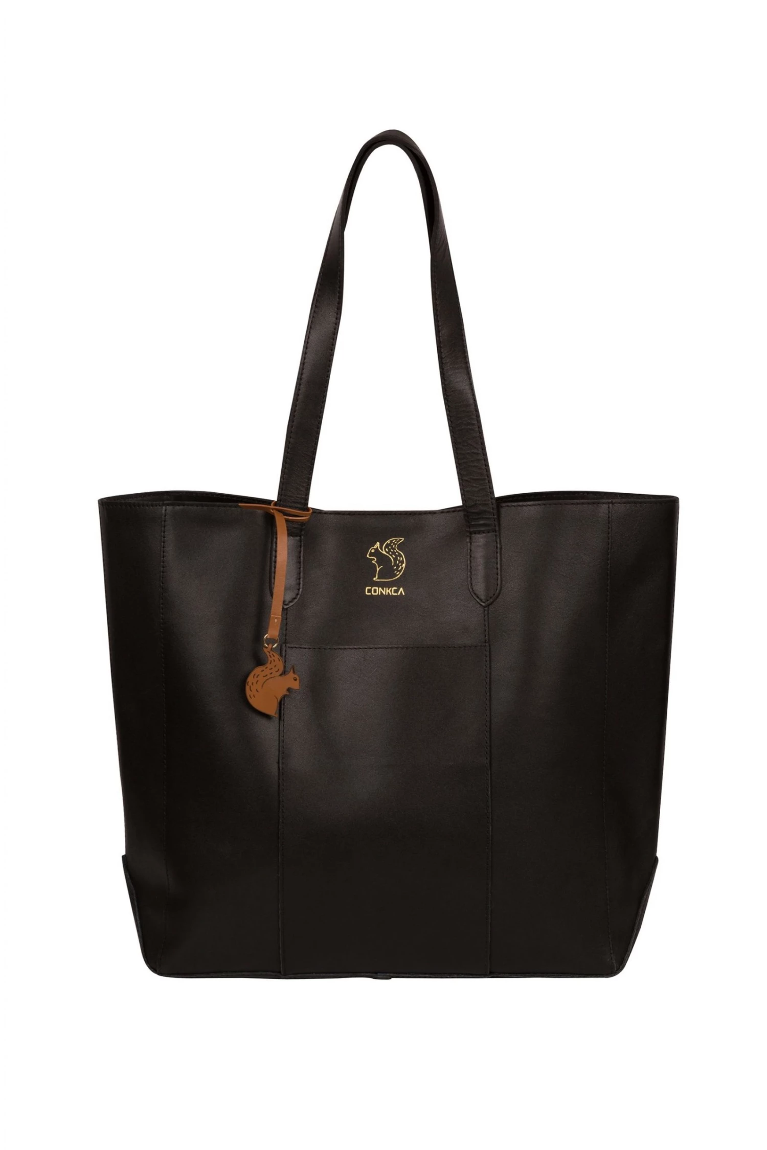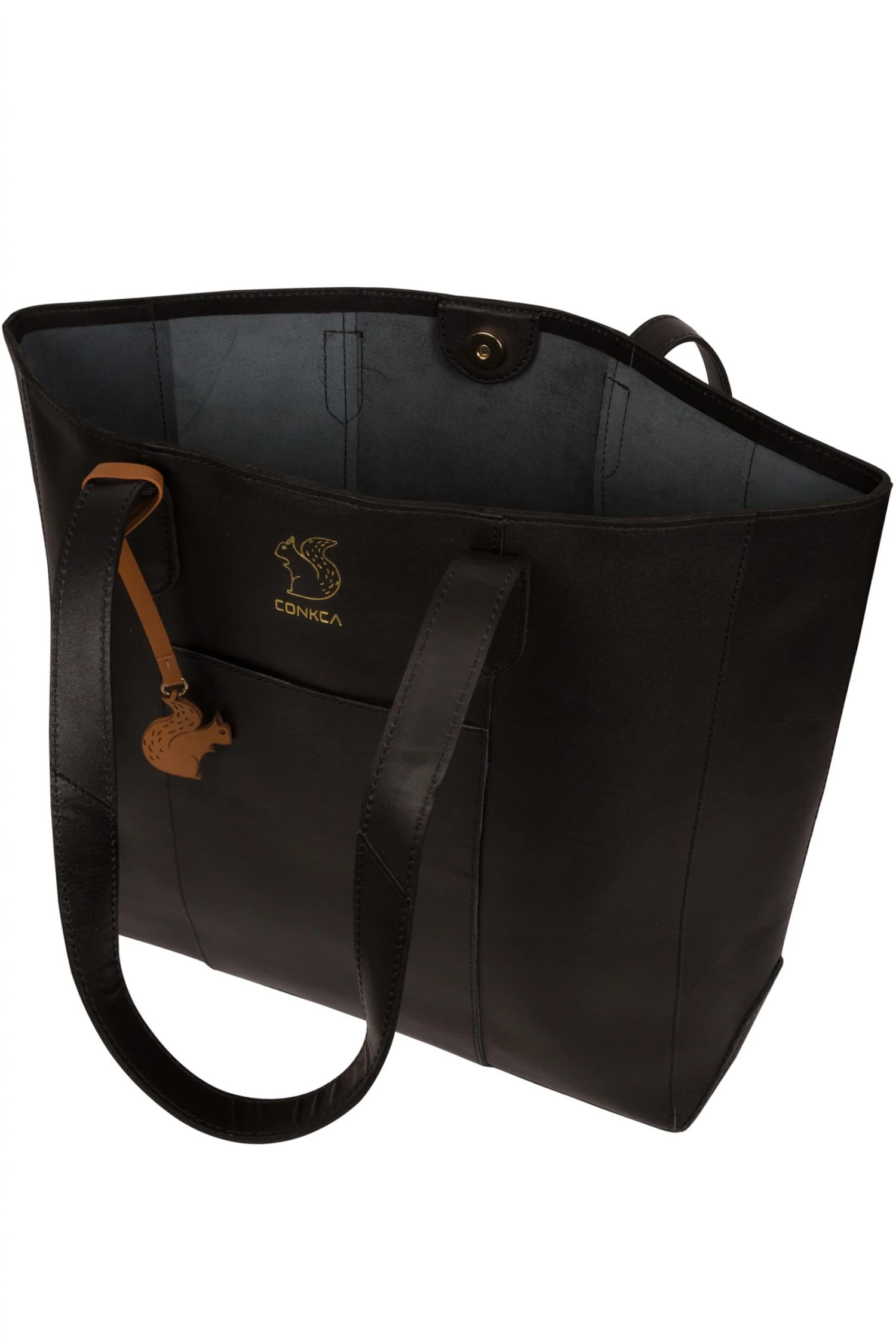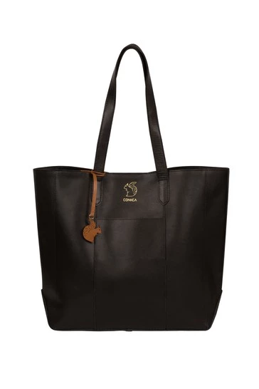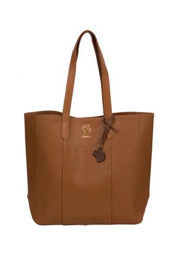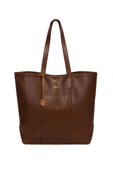 The Hardy from Conkca London is handcrafted from high-quality vegetable-tanned gold standard leather for a smooth and sophisticated finish. A magnetic press-stud closure conceals a fuss-free, spacious central compartment and comes with an unlined, soft to the touch natural leather interior. A slip pocket to the exterior is perfect for when you are on-the-go and featuring matching leather carry handles for maximum comfort. Adorned with the inimitable Conkca squirrel charm and logo.