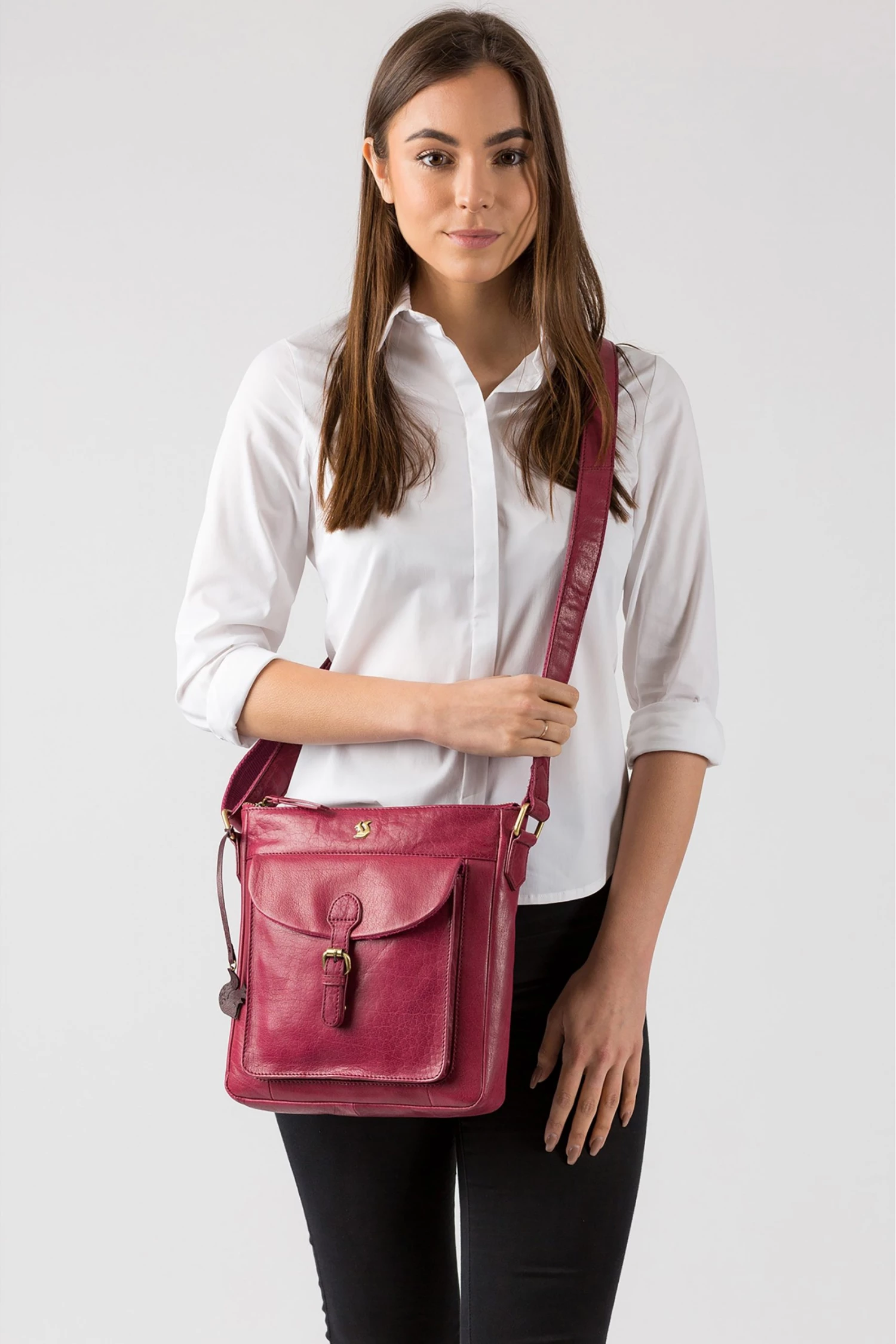 Part of the Conkca Originals collection, featuring classic designs reinvented with contemporary craftmanship, the ‘Josephine’ shoulder bag has been handcrafted from genuine leather for a beautiful finish. With a zip-over top securing a beautifully lined central compartment and two interior slip pouches, ideal for a smartphone and keys. External storage is provided with a spacious front pocket featuring a magnetic clasp concealed under a mock-buckle design, perfect for when you are on-the-go. Finished with an adjustable fabric-lined leather strap for comfortable wear and adorned with the inimitable Conkca squirrel charm for a touch of luxury.