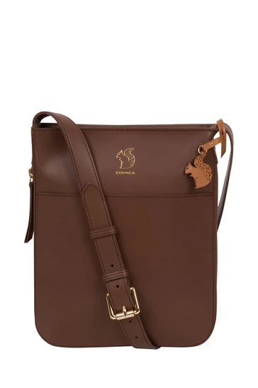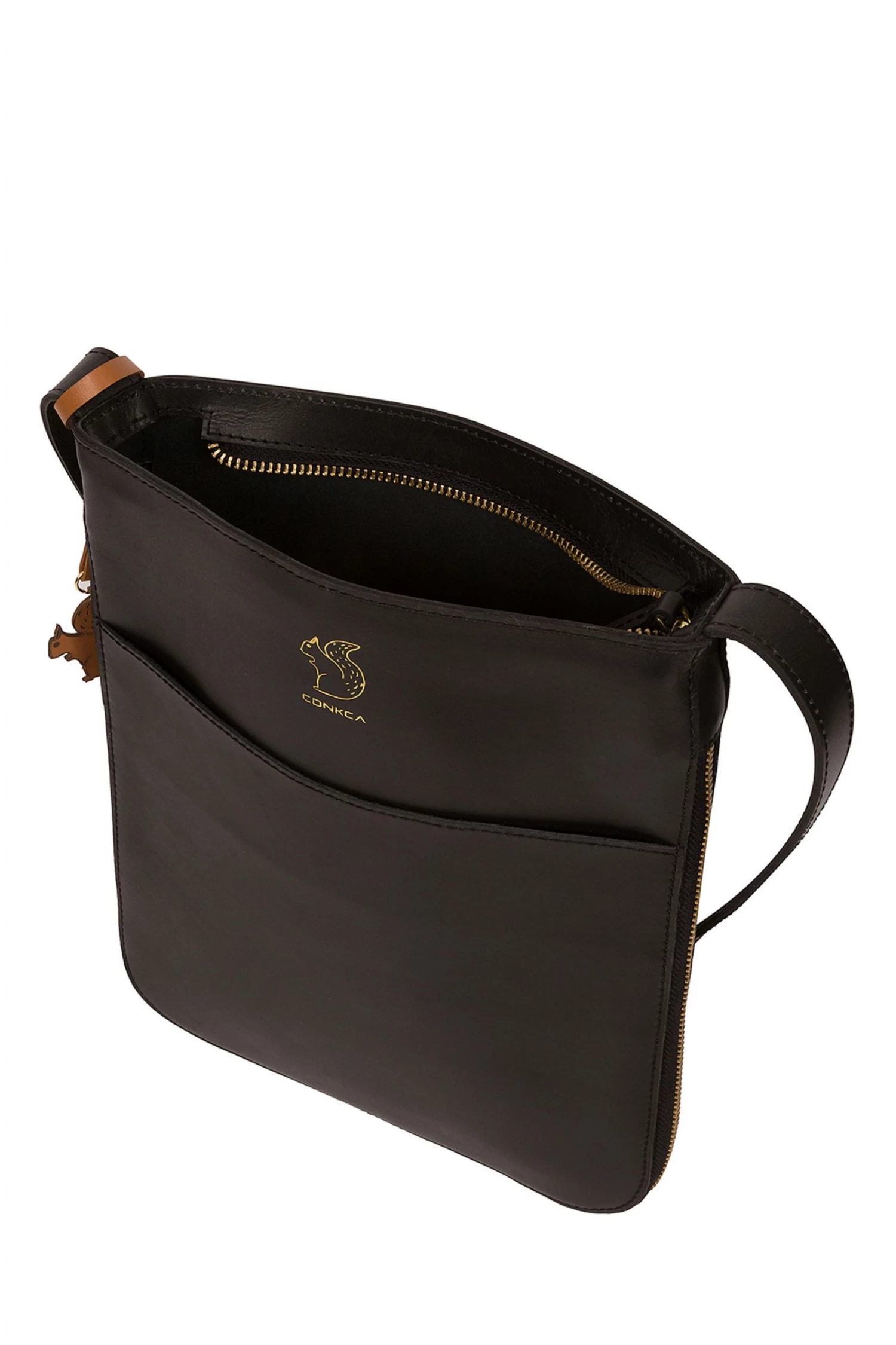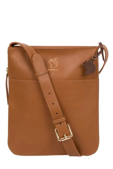 The Launter cross-body bag from Conkca London is handcrafted from high-quality vegetable-tanned gold standard leather for a smooth and sophisticated finish. A zip-over top secures a spacious compartment that comes with an unlined, soft to the touch natural leather interior. A zip around the sides and bottom of the bag allows for expandable storage, ideal for when you need a little extra space. Features an adjustable matching leather strap with a drop length of up to 65cm.