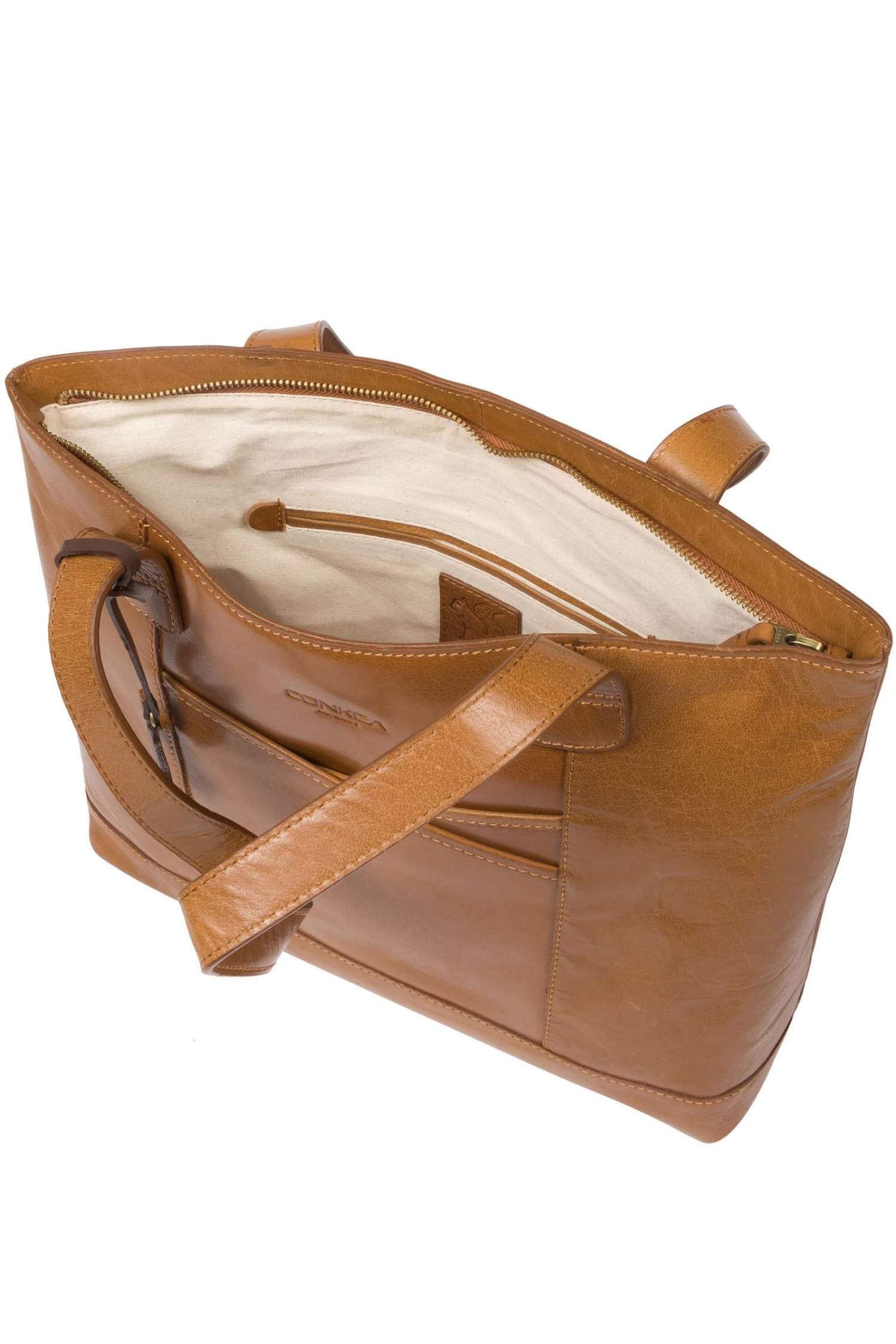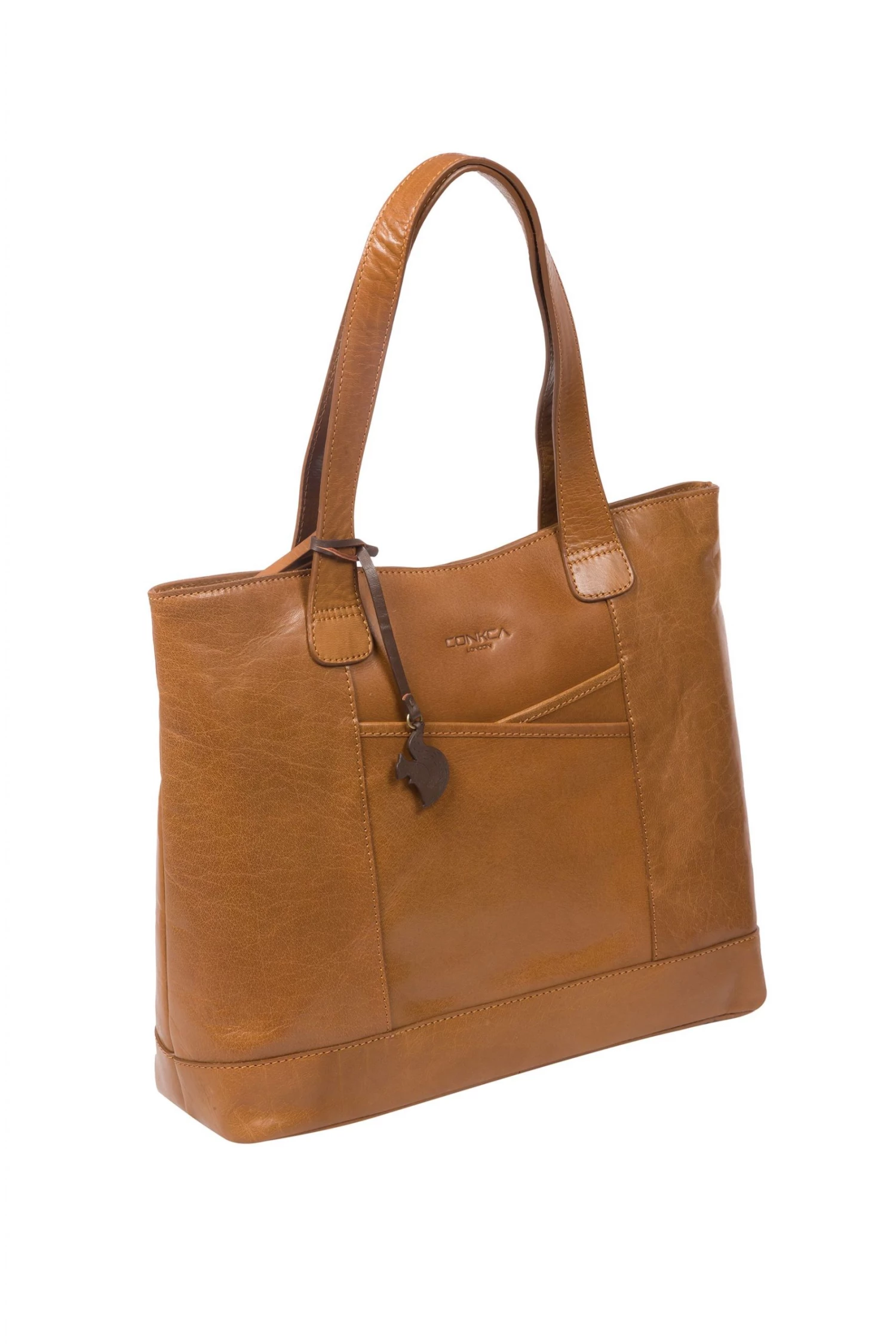 Handcrafted from genuine leather for a beautifully smooth finish which alongside attractive overlap slip pockets gives this bag a sophisticated look. On the interior is a plethora of storage features – ideal for all your essentials whether out shopping or out for the night. Finished with matching leather handles and adorned with the inimitable Conkca squirrel charm.