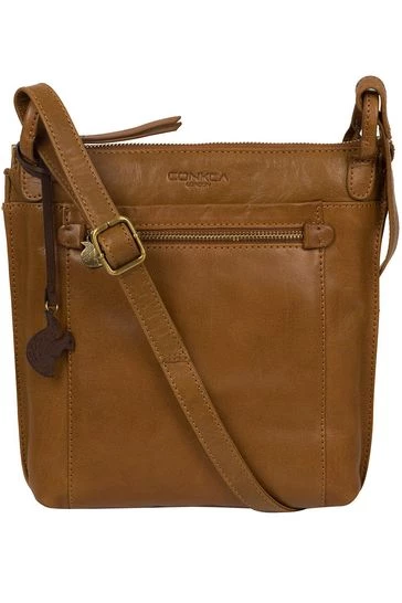 The ‘Rego’ leather cross-body bag is handcrafted from high-quality natural leather and a zipover top which secures the central compartment. On the interior of the bag is a natural, untreated 100% cotton lining which is lined with interior pockets ideal for your phone, purse and keys; this is complimented by a zipped pocket and two slip pockets on the exterior which is ideal for on-the-go access. As a lovely finishing touch, the bag is adorned with the inimitable Conkca squirrel logo and charm and comes with an adjustable strap with a drop length of 70cm.