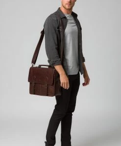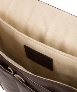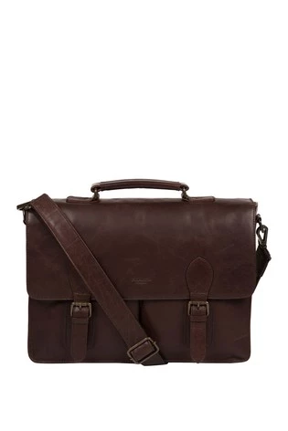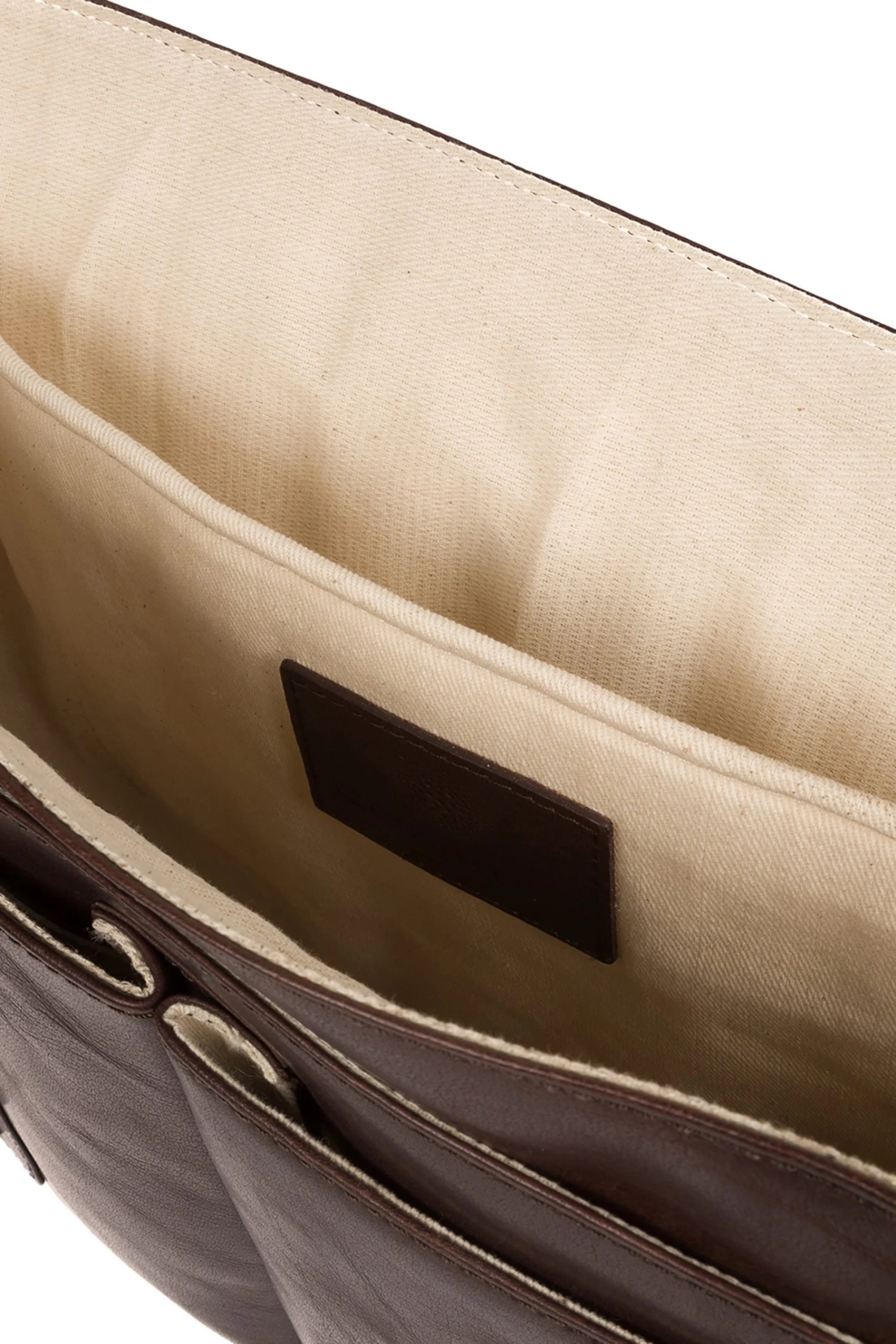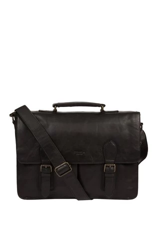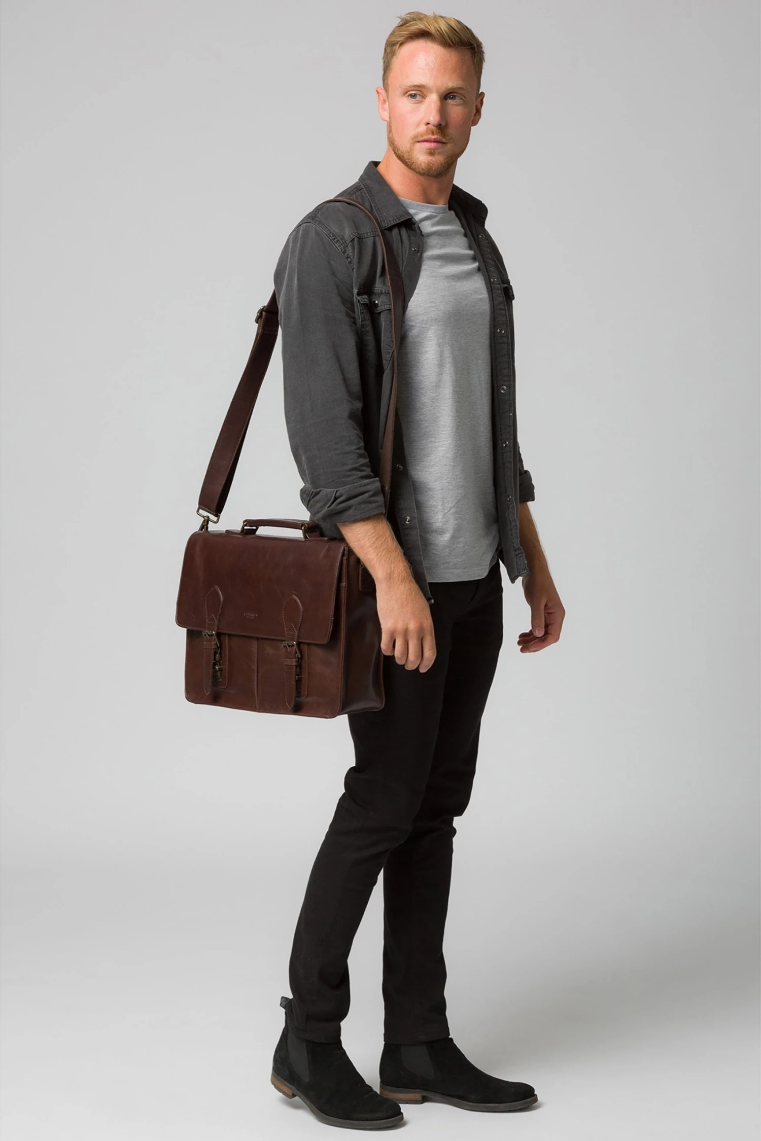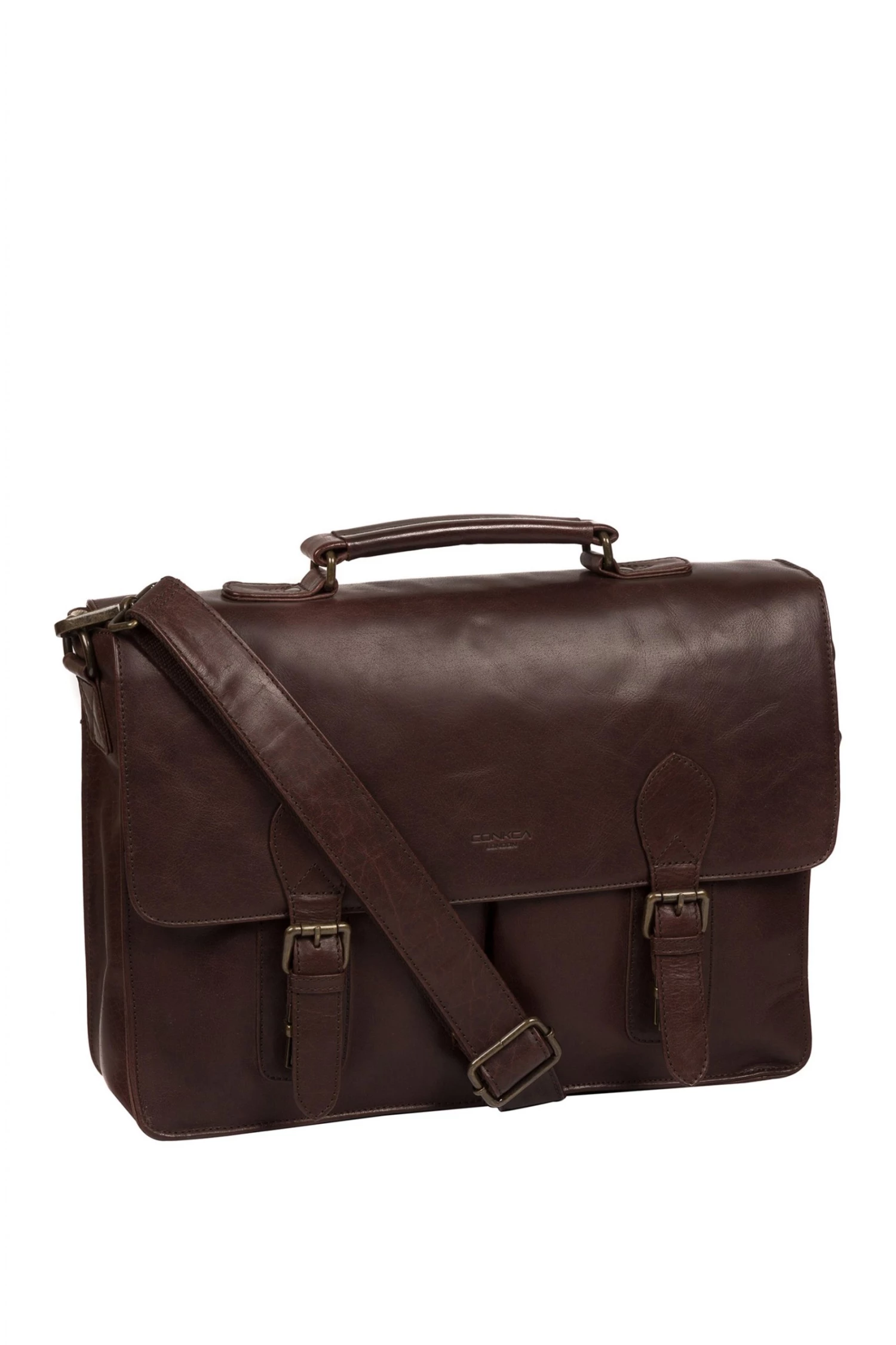 The ‘Scolari’ leather briefcase is handcrafted from full grain leather for a fantastic robust finish. Two buckles secure the foldover top and the central compartment which comes lined with a natural, untreated 100% cotton lining alongside the all-metal fittings and zips. Featuring six internal pouches ideal for all your essential items plus a padded pocket ideal for a laptop or tablet with a maximum size of 32cm. There is also an external pouch for on-the-go access. Comes with a detachable adjustable fabric lined leather strap and finished with the handsome Conkca leather label.