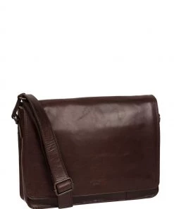 The ‘Zagallo’ leather messenger bag is handcrafted from full grain leather for a fantastic robust finish. A foldover top secures a spacious central compartment which comes lined with a natural, untreated 100% cotton lining alongside the all-metal fittings and zips. Includes three internal pouches under the foldover top ideal for keys, a purse or wallet and a smartphone, plus a laptop sleeve. A zipped pocket and pouch under the foldover top provide easy on-the-go access. An adjustable fabric-lined leather strap with a maximum drop length of 70cm and finished with the handsome Conkca leather label.